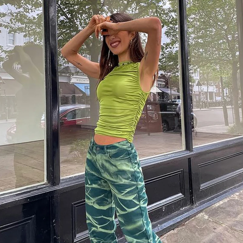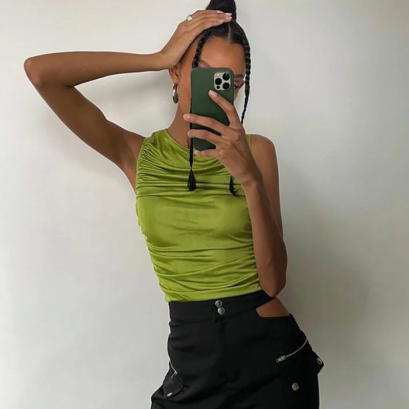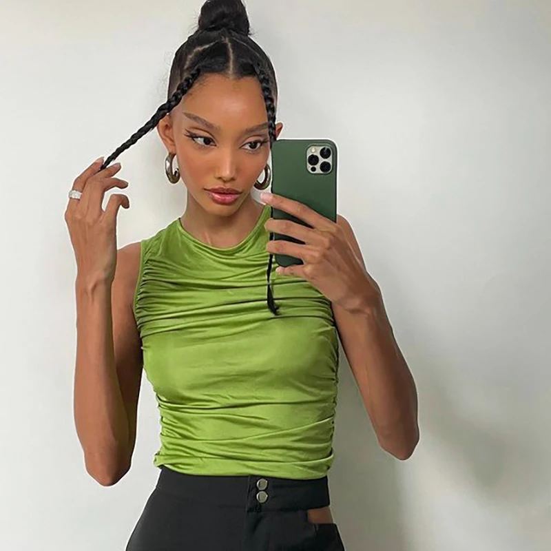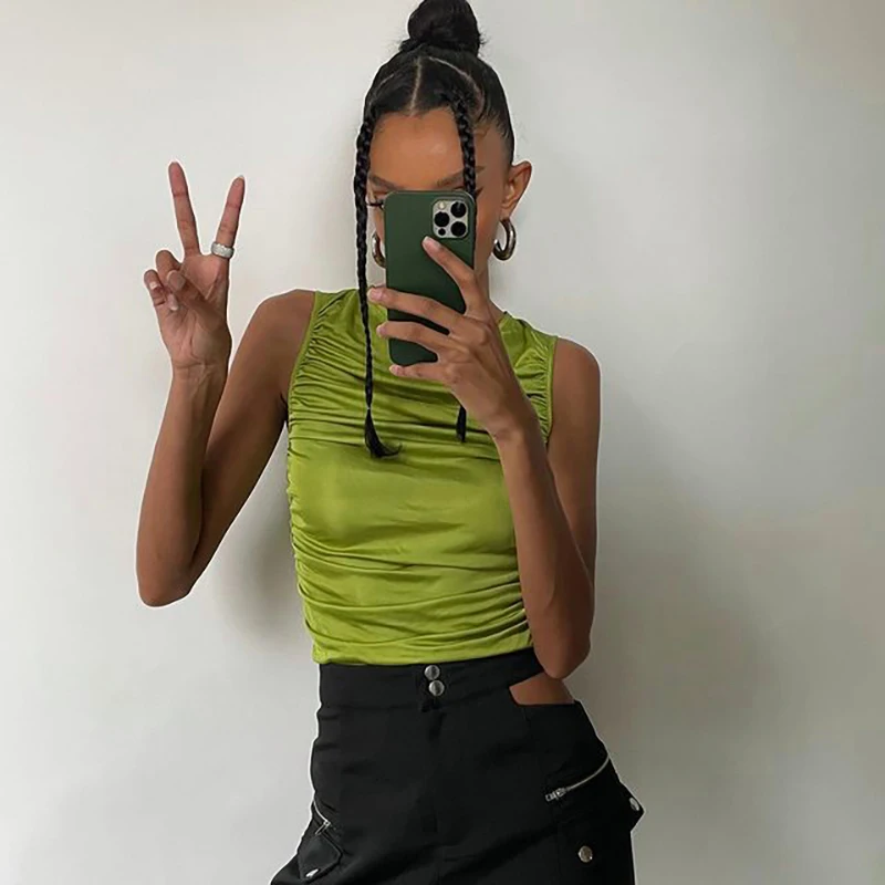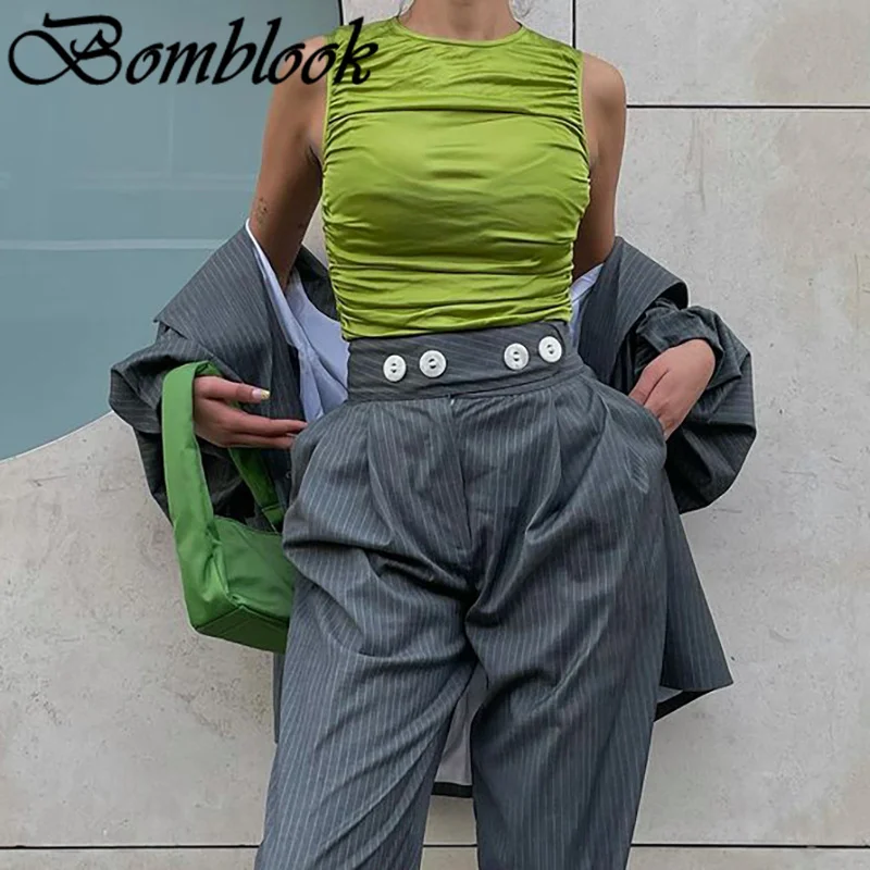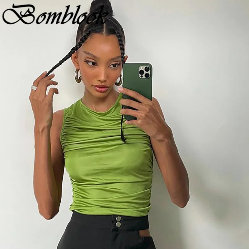 Bomblook повседневные Модные Женские однотонные Y2K, летние комплекты с футболками и 2021 без рукавов Гофрирование женский все-матч топы уличный стиль