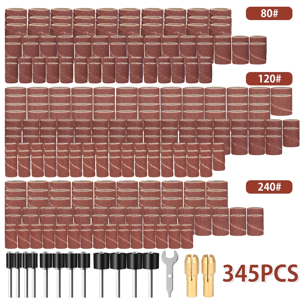 345 шт. шлифовальная машина гильз набор наждачная бумага резина 2 оправки подходят для вращающихся инструментов Dremel шлифовка полировка 12 "14" 38"