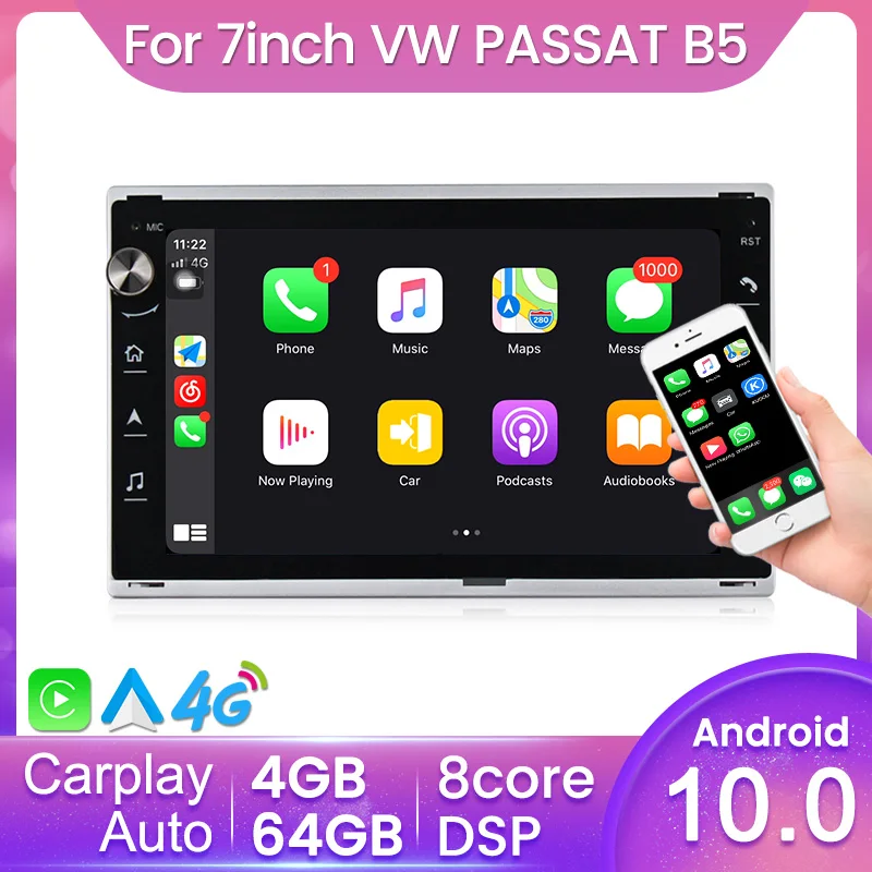 Автомобильная магнитола, мультимедийный плеер на Android 10, 4 Гб ОЗУ, 64 Гб ПЗУ, с DVD, для Volkswagen VW Passat B5, Golf 4, BORA MK5, SHARAN JETTA, типоразмер 2 Din