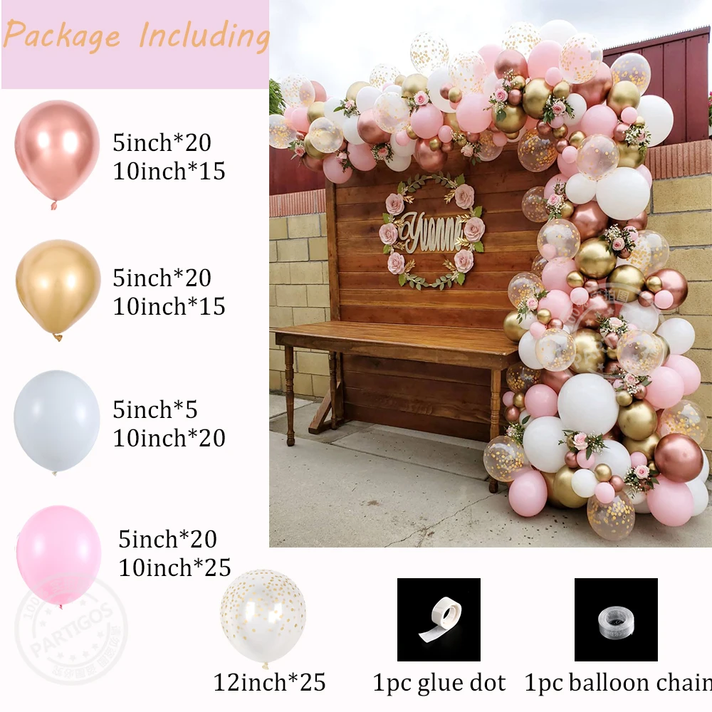 Надувные шары, 167 шт., шар цвета розового золота, арочный комплект, розовые, белые, хромированные, для Дня Святого Валентина, свадьбы, дня рождения, вечеринки, украшения для детей
