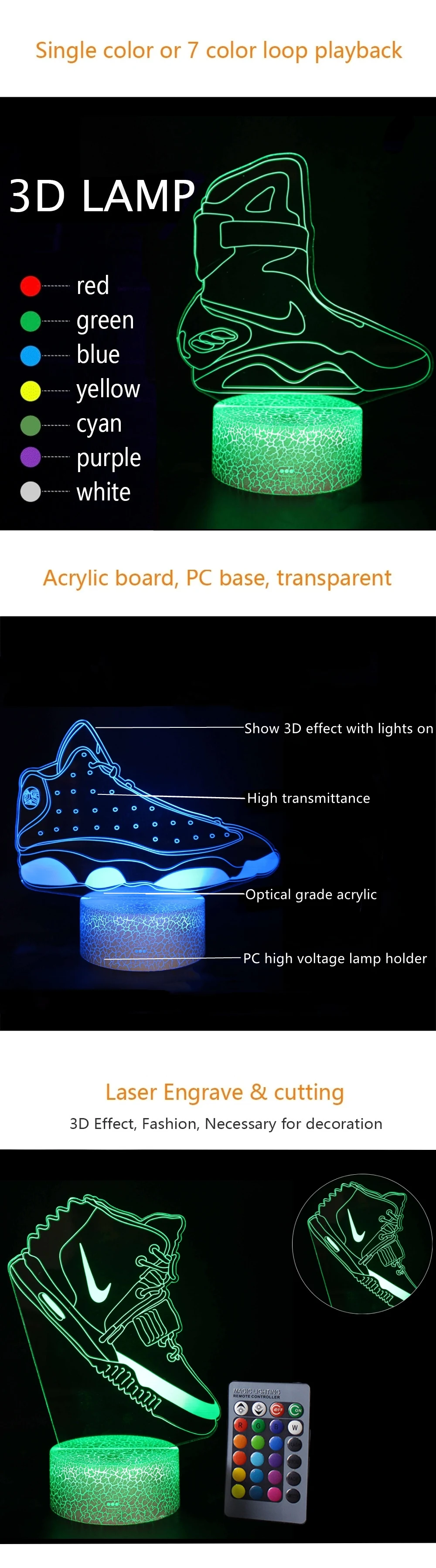 Цвет изделия: красный, зеленый, синий, желтый, зеленый, фиолетовый, белый, можно установить монохромный или градиент из семи цветов градиент цвета