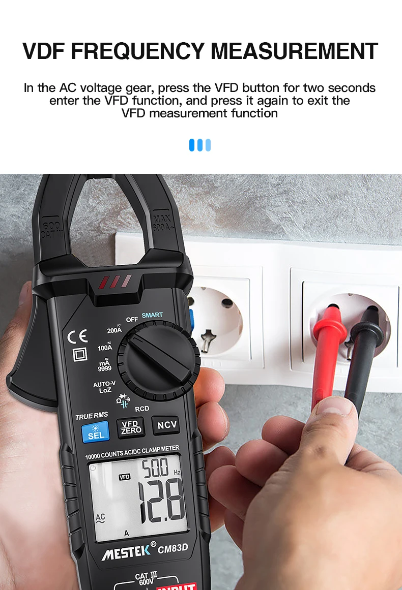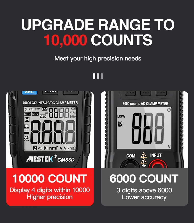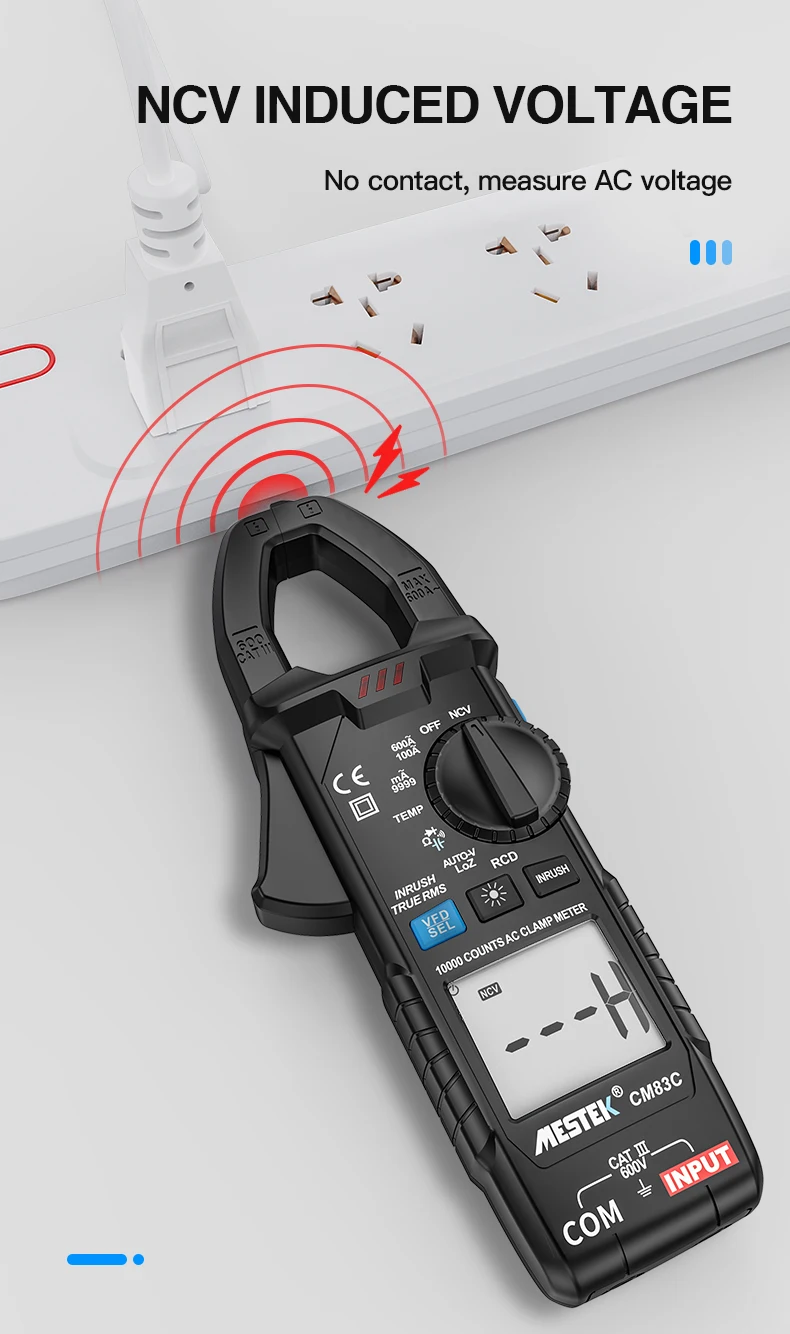 Цифровой токоизмеритель MESTEK, тестер с функцией True RMS и автовыбором диапазона, 600 А постоянного и переменного тока, Бесконтактный индикатор напряжения, Омметр