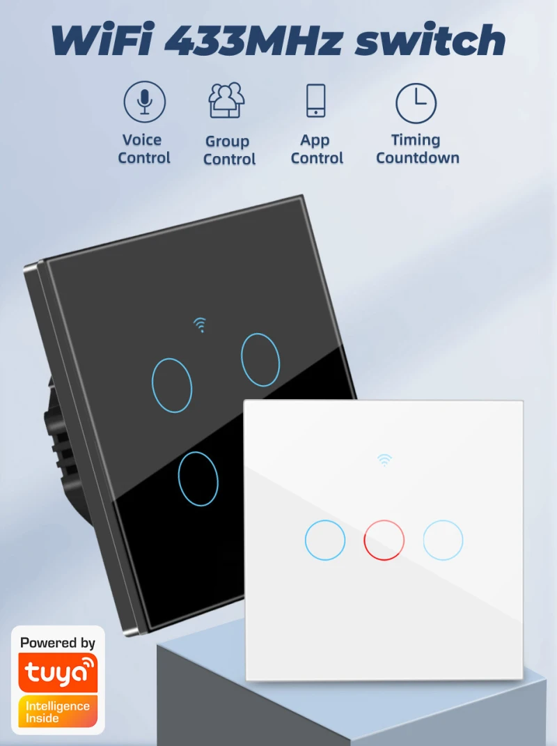 【Четыре метода управления 】 управление приложением + Голосовое управление + 433 МГц RF беспроводной переключатель + переключатель сенсорного управления