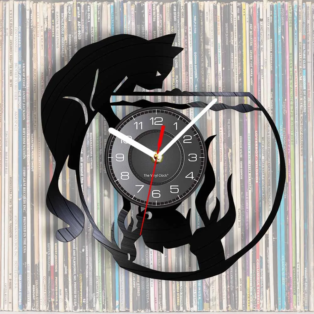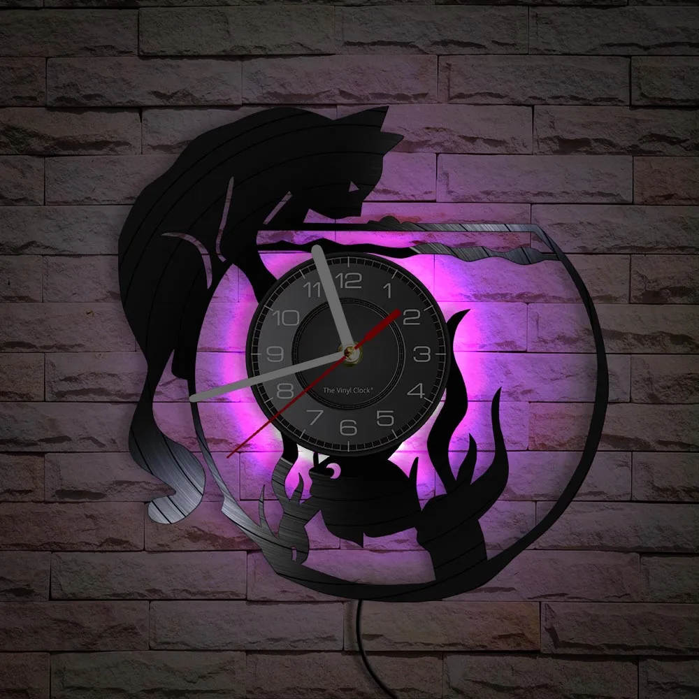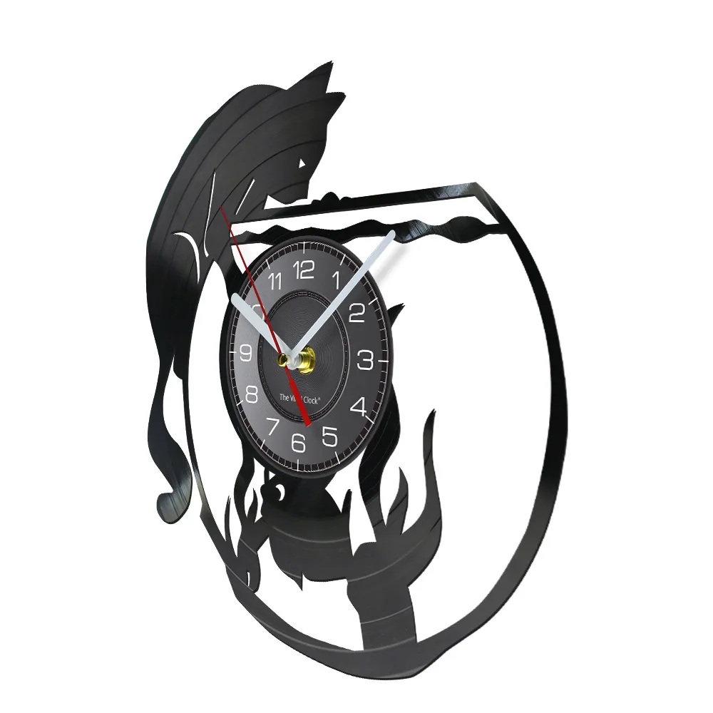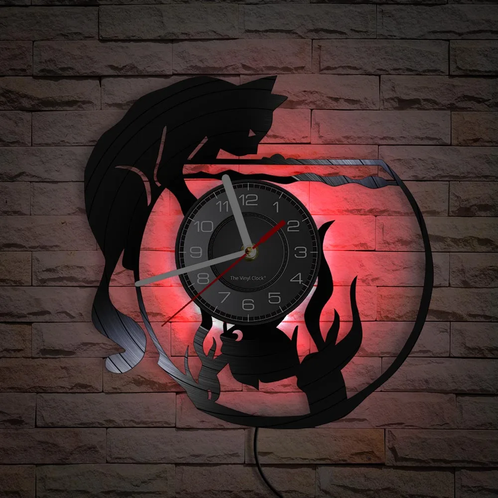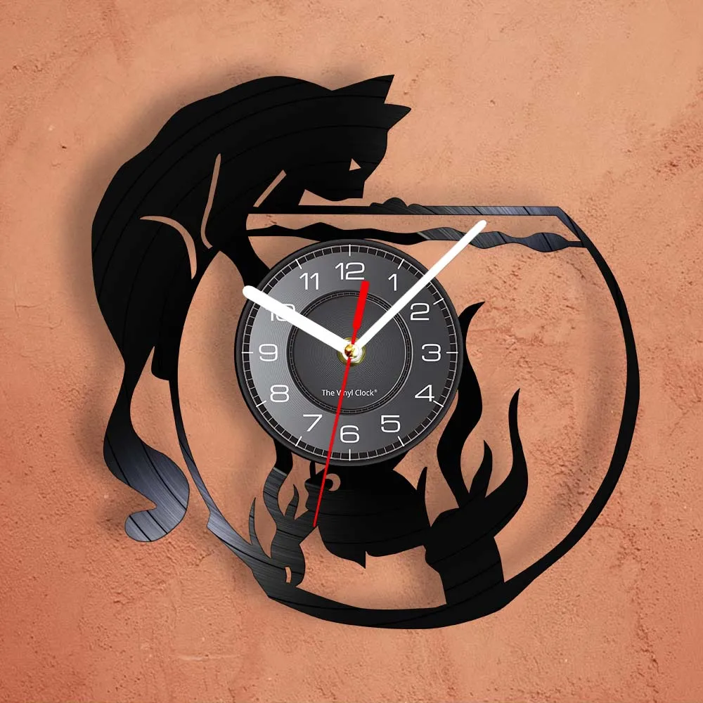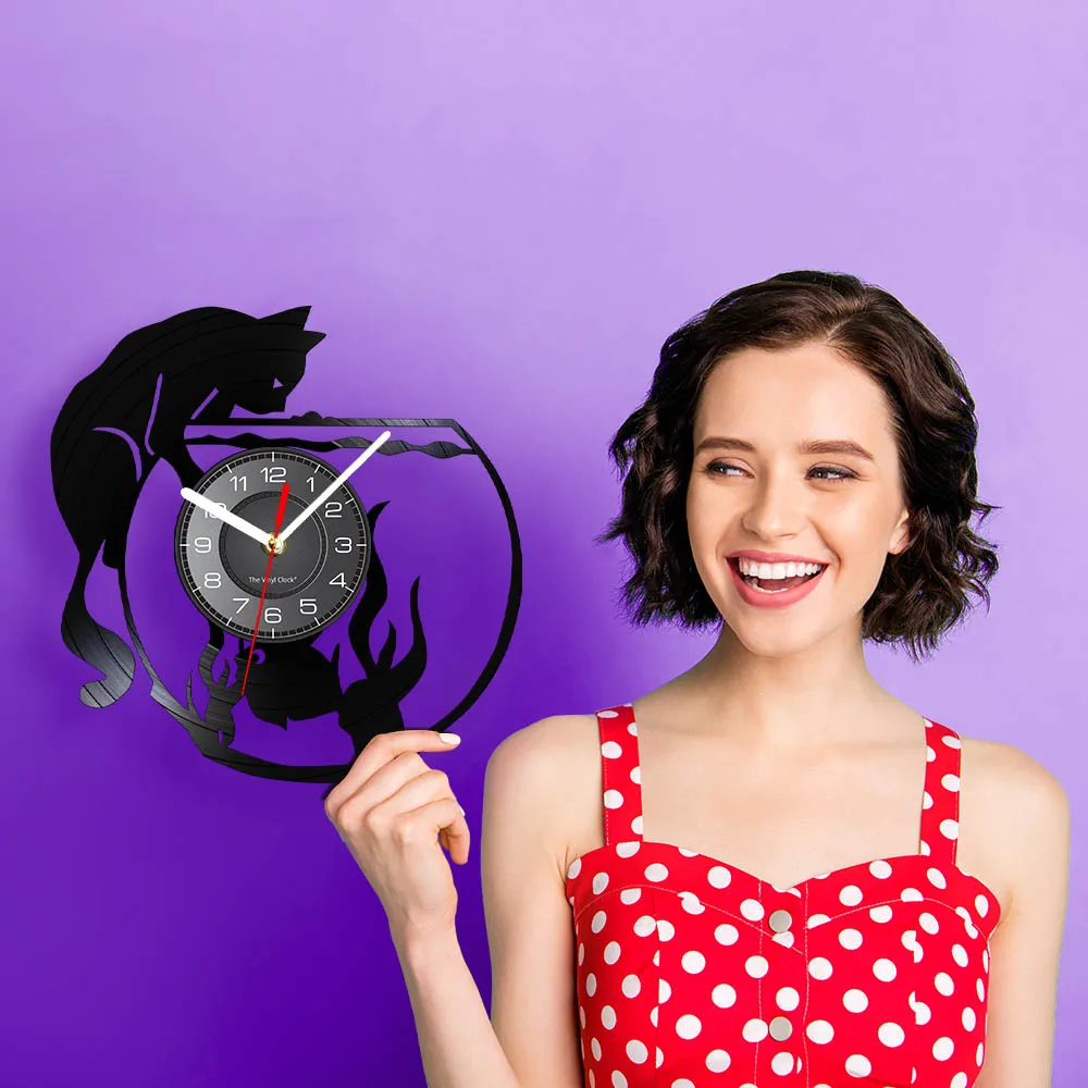 Бесшумные настенные часы с рисунком кошки и рыбы, домашний декор для гостиной, виниловая пластина, милые часы в стиле ретро для домашних животных