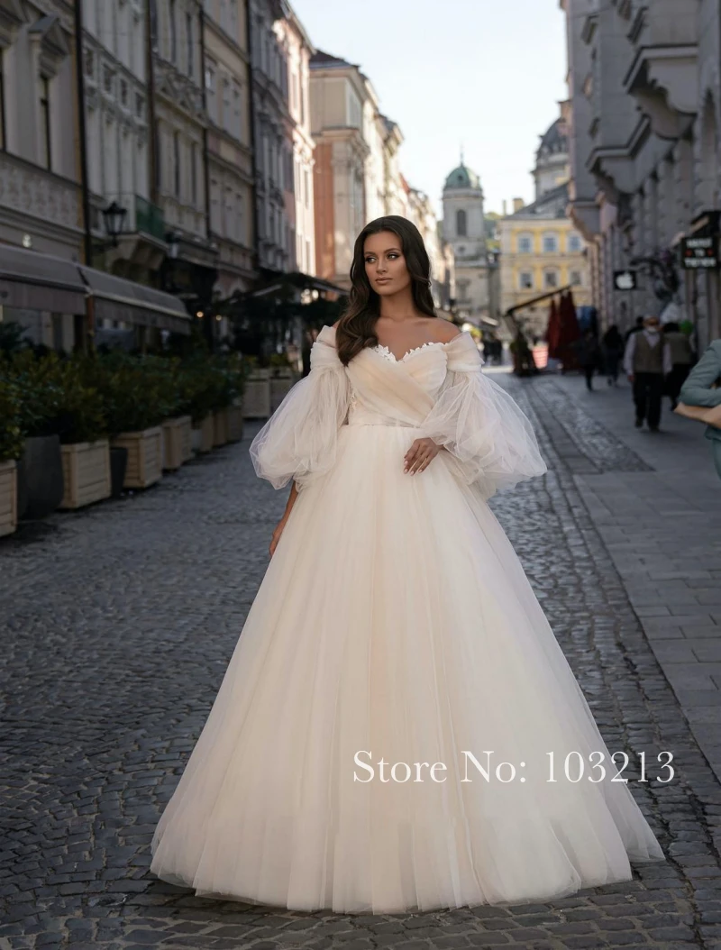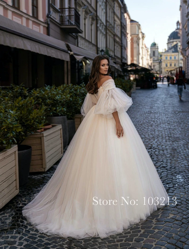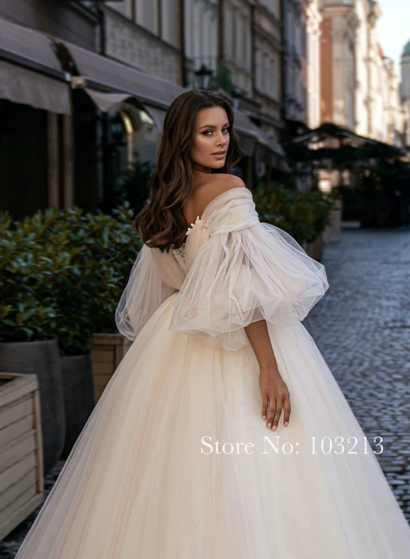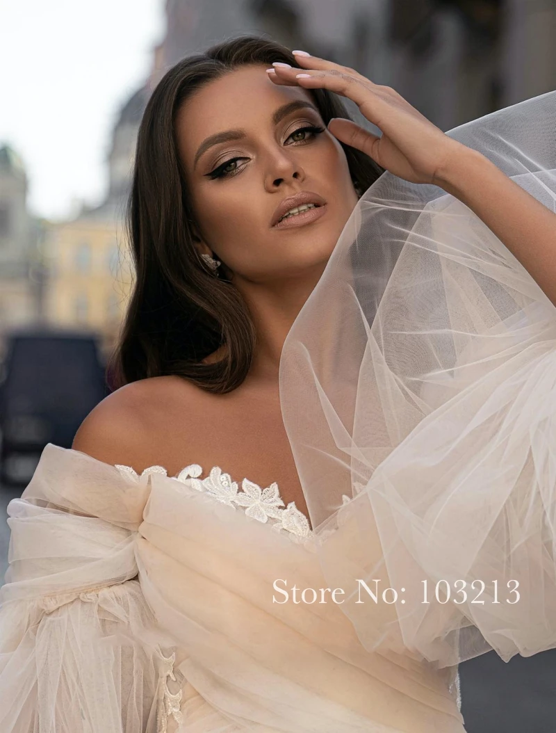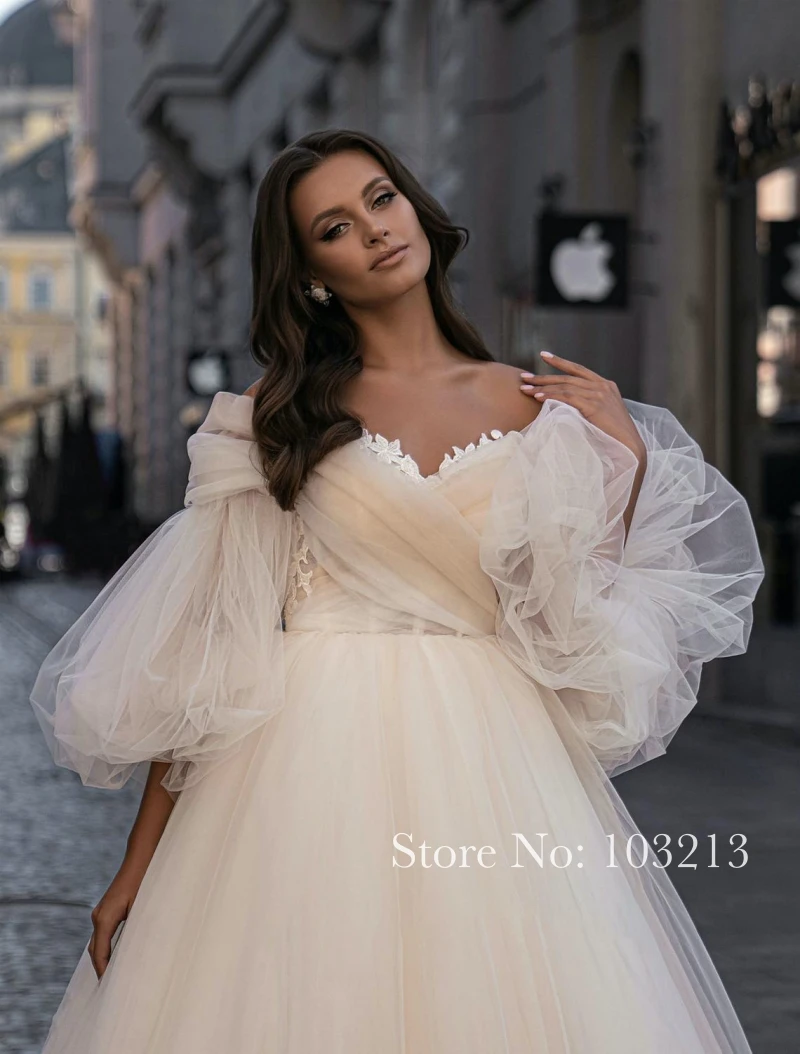 Элегантное Тюлевое винтажное свадебное платье-трапеция, с рукавом-крылышком 34, длиной шикарное свадебное платье, 2021