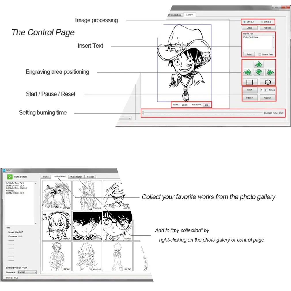 Особенности: 1. Поддержка нашего профессионального программного обеспечения для дизайна на английском языке. 2. Гравировка в 10 раз быстрее. 3. Прочная и крутая конструкция, высокая точность и стабильность, с 108 винтами и структурой сплава, которые делают его сильным. 4. Уникальный каркас и слабый светильник, автоматическое позиционирование, позиционирование кадра облегчает позиционирование изображения, слабый светильник, даже не будет трудно выгравировать зубочисток, сделать гравировку без лишнего остатка и идеально подходит, также более безопасно для предотвращения пожара. Описание: 490x490 принт с высоким разрешением, мягкий материал может Распечатать 3D и градиентный эффект. В течение одного времени, NEJE разработала Профессиональный IC и радиатор, время резьбы будет длиться гораздо дольше, чем другие лазерные и более стабильные. Действительно 1000 МВт Синяя и фиолетовая лазерная головка, более высокая скорость, Поддержка большего количества типов материалов. Спецификация: Модель: DK-8-KZ Цвет: черный и красный Материал: акрил + алюминий + нержавеющая сталь Мощность лазера: 1000 мВт/2000 МВт/3000 мВт Длина волны лазера: 405нм; Рабочая температура лазера: 500 градусов; Поддержка программного обеспечения: лазерный гравер; Форматы изображений: jpg; Размер изображения: 490x490 пикселей; Изображение гравировки узор: битовая гравировка; Напряжение питания: 4,2 V-5,5 V; Потребляемый ток: 1A; Поддержка xp, win7, win8, win10; Может быть вырезаны объектов: красное дерево, бамбук, бумажные карточки, слоновая кость, кожа, легковоспламеняющийся пластик, PCBA и т. Д. И так далее. Не может выгравировать металл/алюминий/акрил. Использование: гравировка, ручные инструменты и промышленная обработка высокой мощности, высокая скорость, высокая точность рабочей области: 38*38 мм какой размер изображения может напечатать до, на какую толщину изделий можно напечатать? 38*38 мм Размер: 16x14.5x2 0 см размер посылка: 30*20*22 см посылка в комплекте: 1 * гравировальный станок 1 * Защитная плата 2 * usb-кабели 1 * шестигранный ключ 1 * Фокусирующая пленка 1 * смазка (опционально) 1 * Руководство пользователя Примечания: не может подключаться к мобильному приложению.