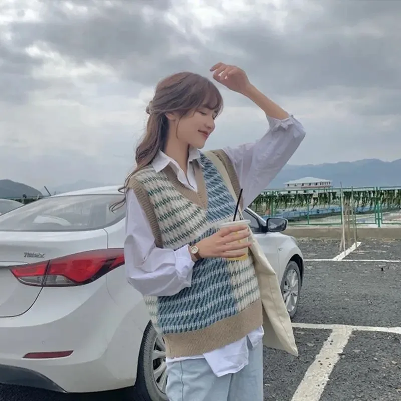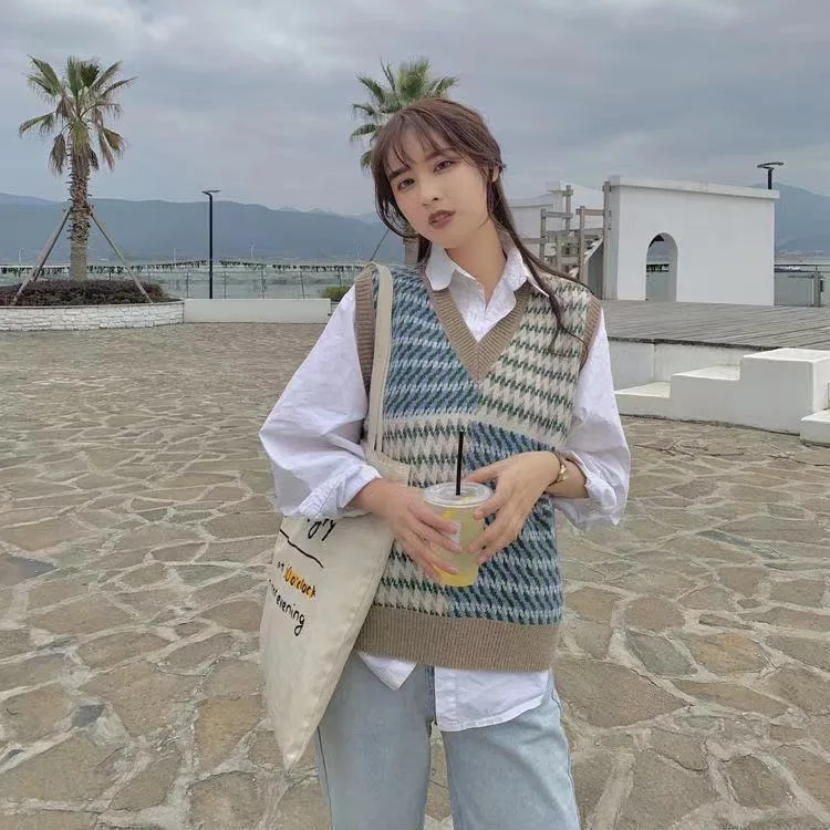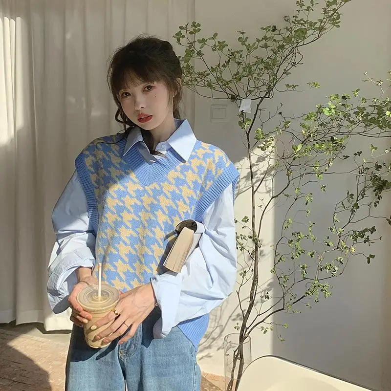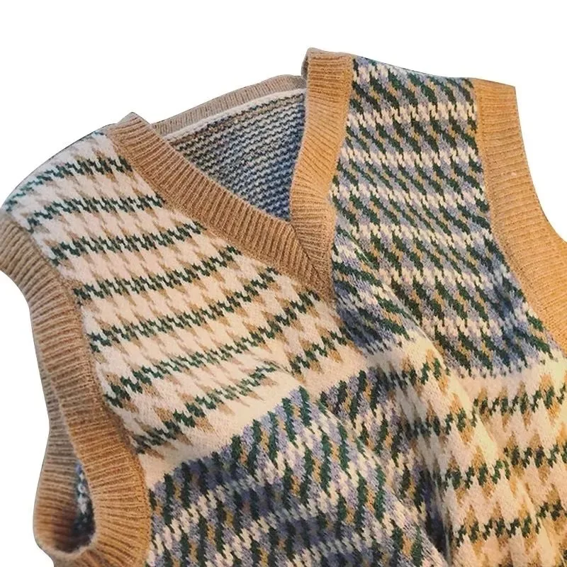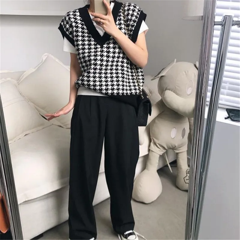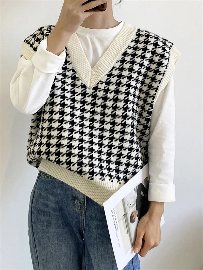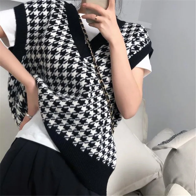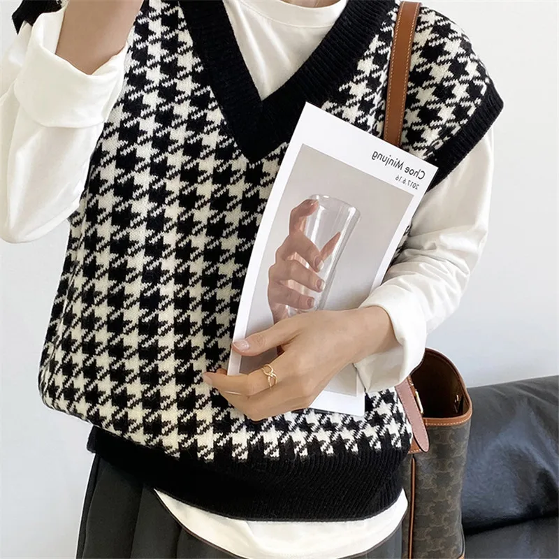 Женский свободный Трикотажный жилет с рисунком гусиные лапки, толстый винтажный свитер без рукавов с V-образным вырезом, женский жилет, шикарные топы, 2021