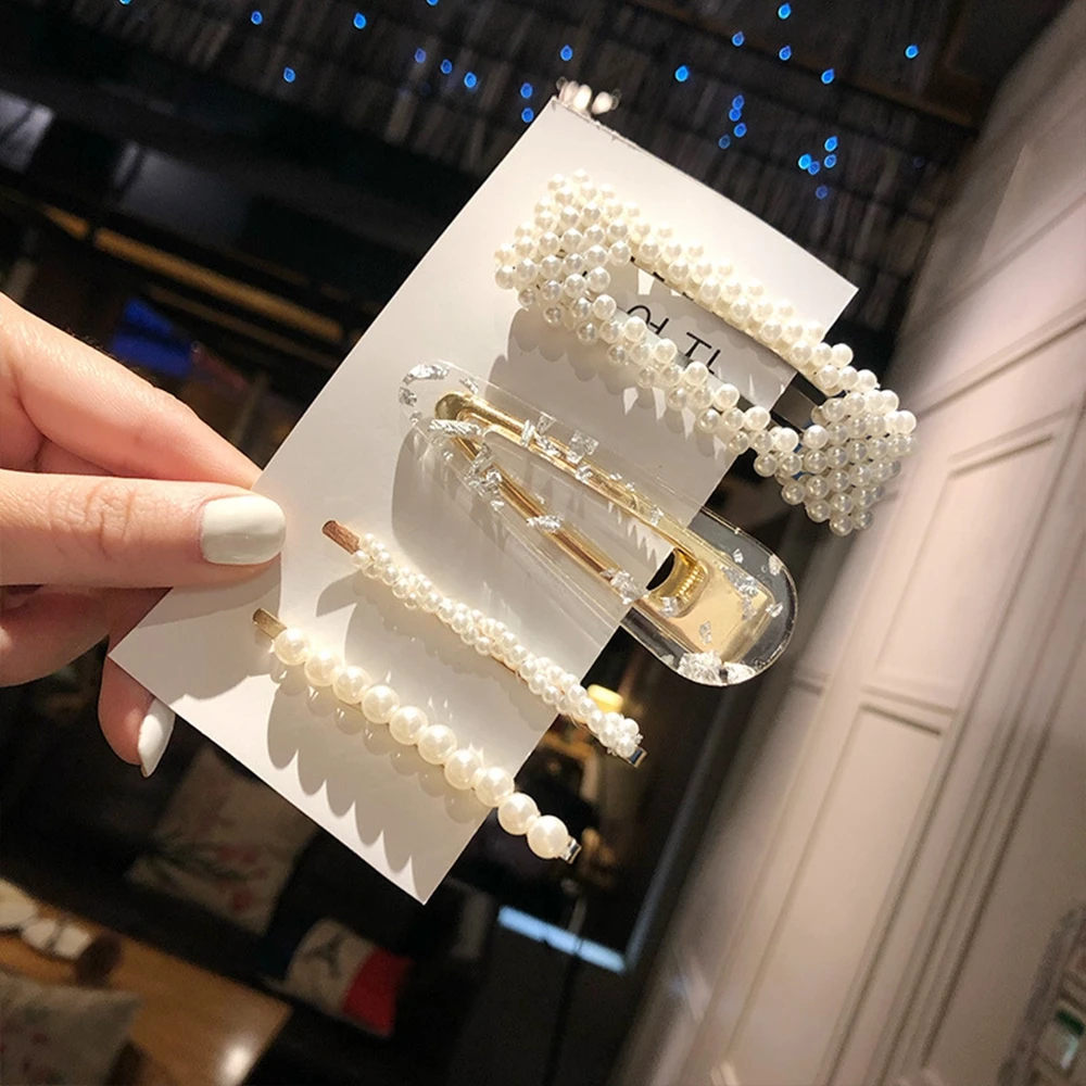 3/4/5 шт./компл. для женщин и девочек, элегантные полные жемчужины, геометрические заколки для волос, милые украшения для волос, заколка, повязка на голову, аксессуары для волос
