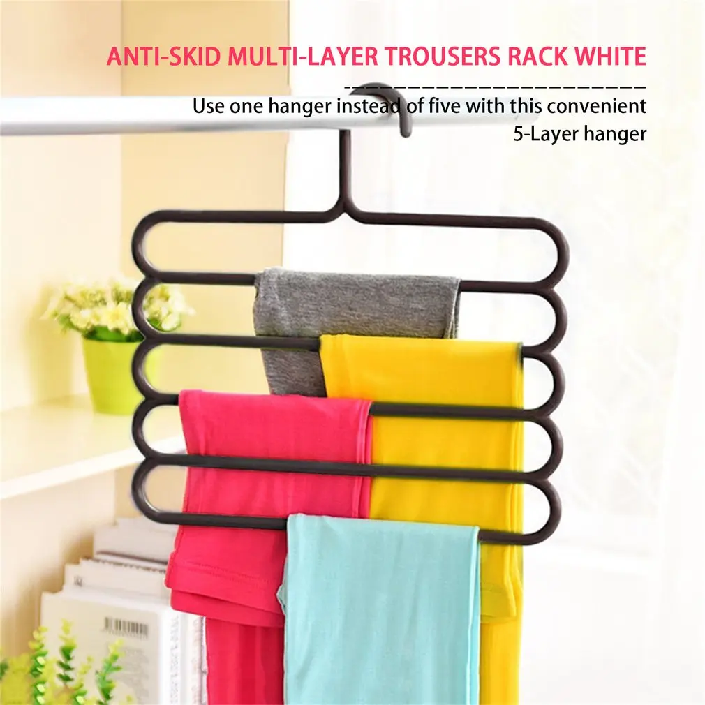 Анти-скольжения Магия несколько Слои брюки вешалки многофункциональные штаны держатель для ремня в шкаф s-образный степлер 5 Слои S Экономия пространства