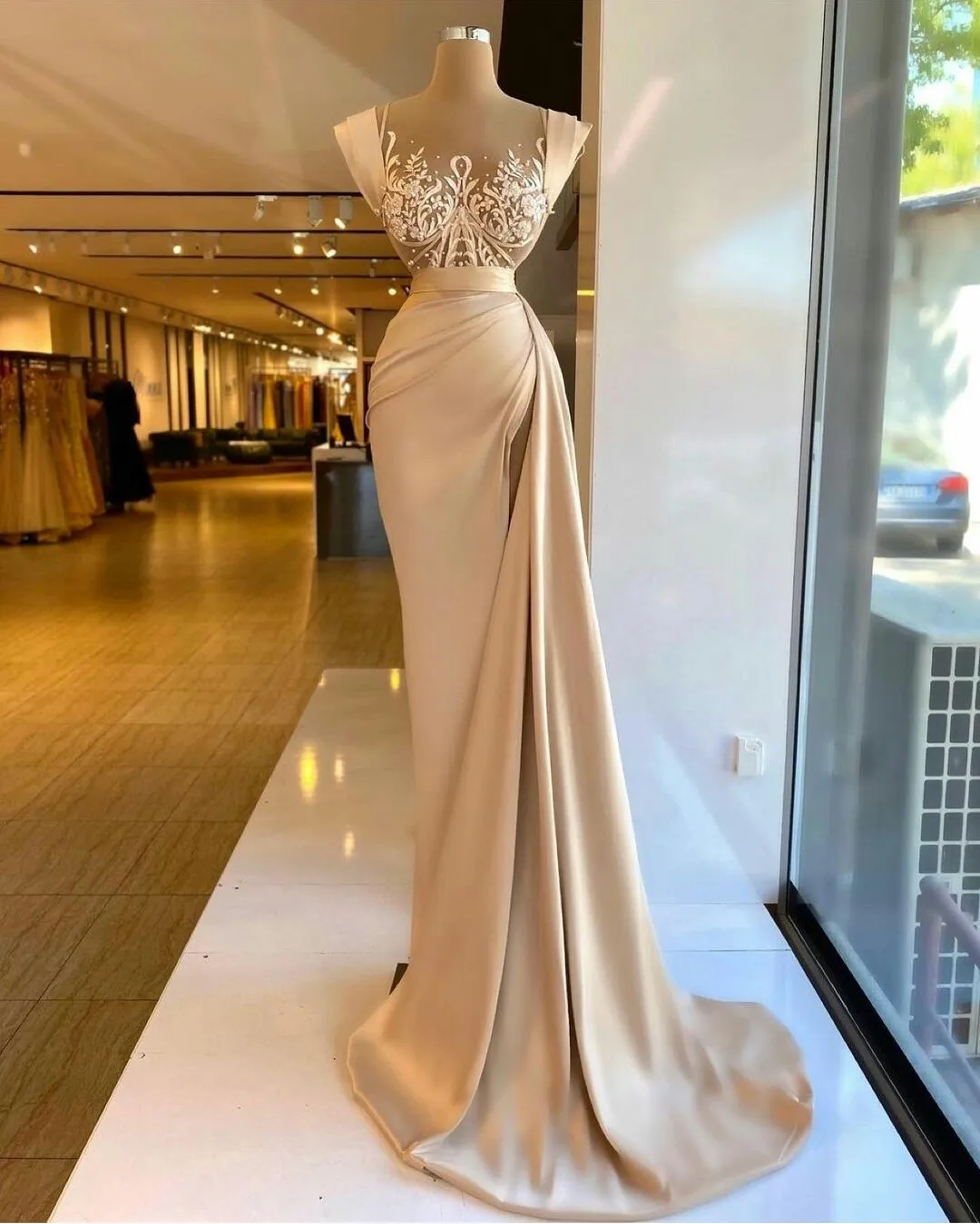 Женское вечернее платье-русалка, атласное платье с высоким разрезом и аппликацией, для выпускного вечера, 2021