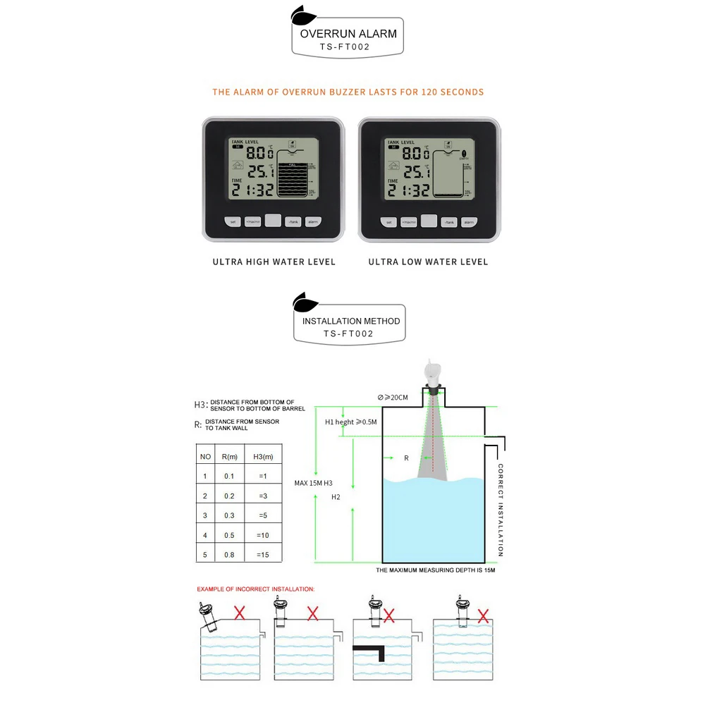 Вы можете установить его в верхней части резервуара для воды, измеритель может измерить точную температуру с помощью ультразвукового датчика.