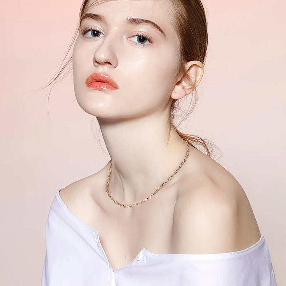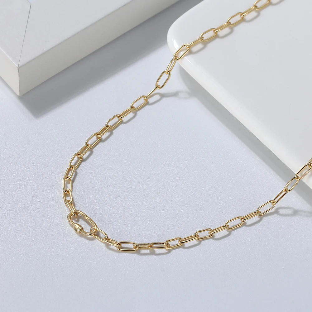 Ожерелье из серебра 925 пробы с зажимом для бумаги, 14 к позолоченная цепочка на шею для мужчин и женщин SC39