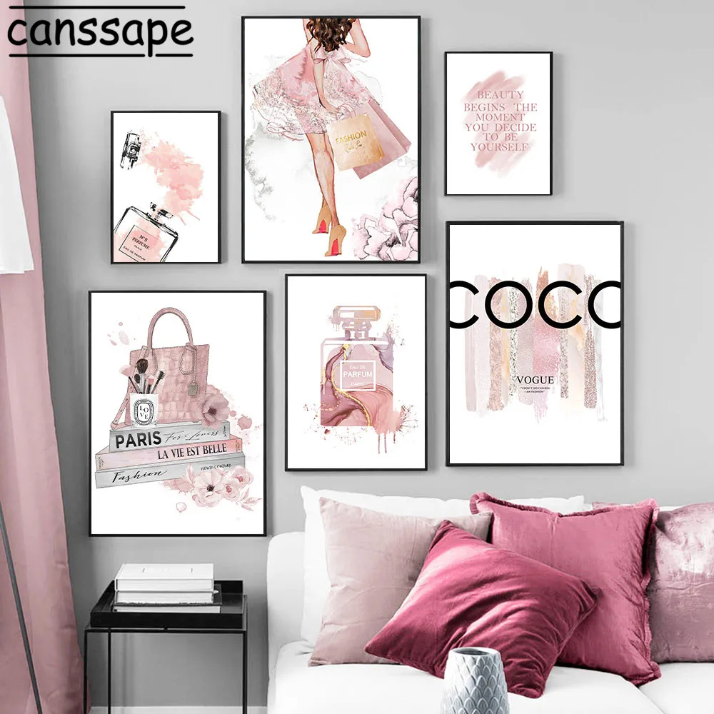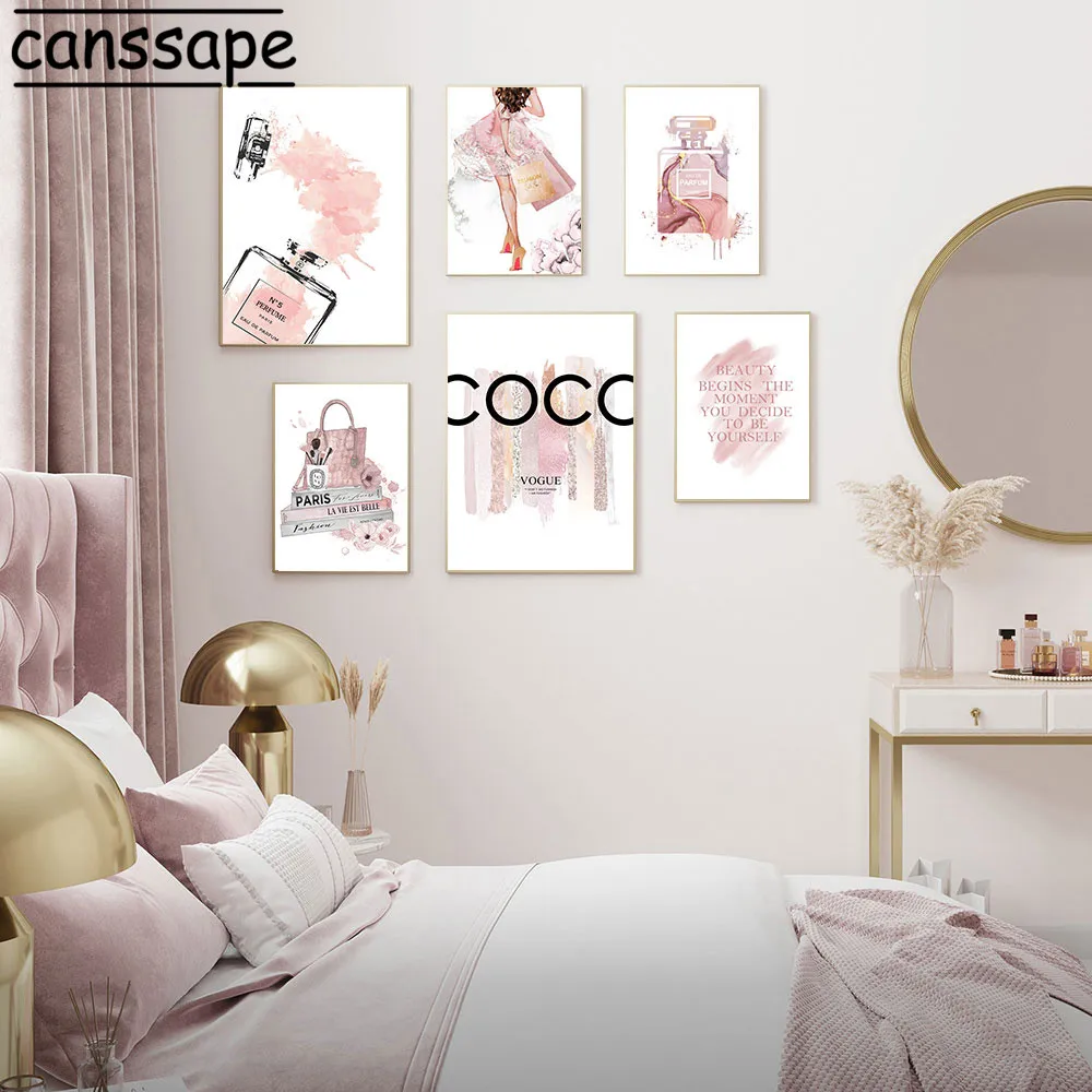 Модная живопись, постеры и принты в скандинавском стиле, флакон духов, настенный плакат, современные настенные картины для девичьей комнаты, украшение для дома