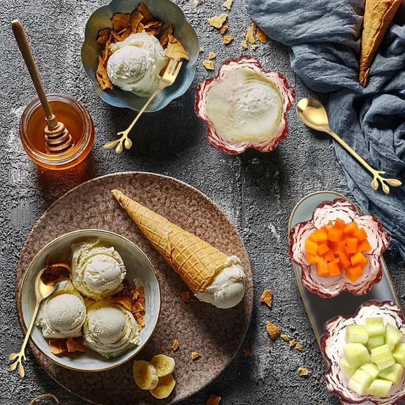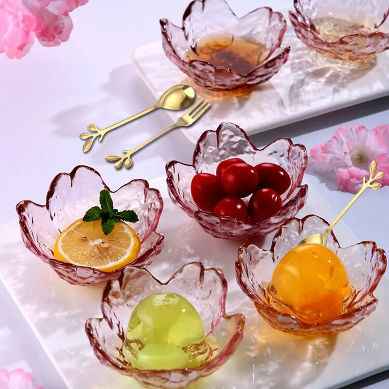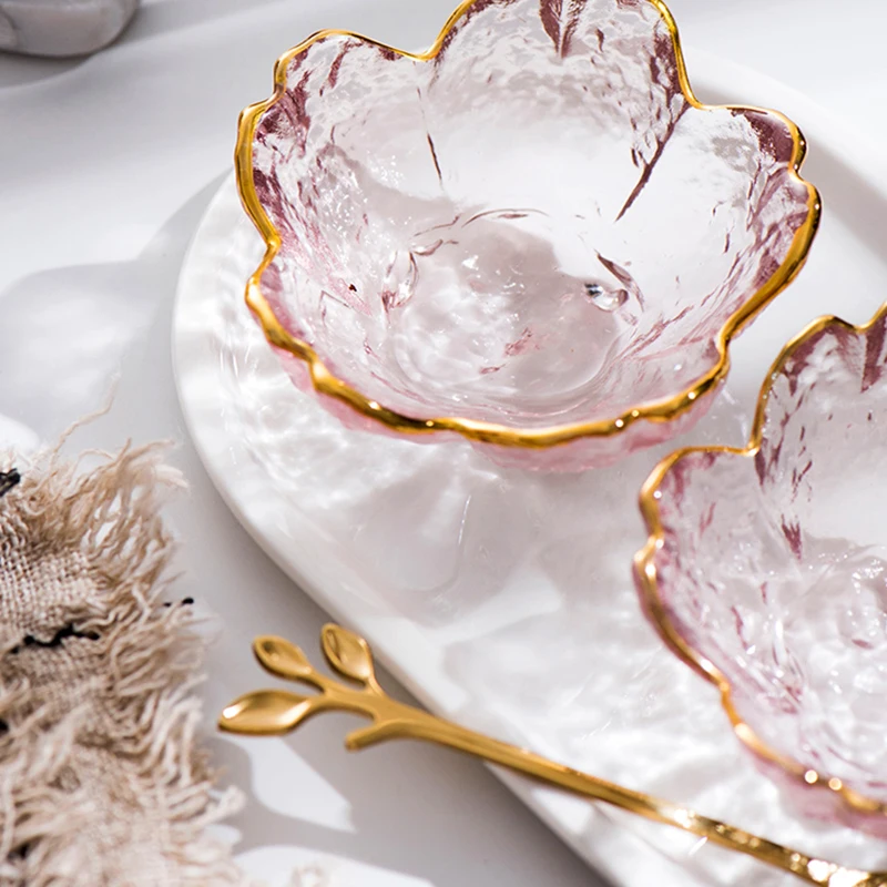 Небольшой Стекло посудомоечная машина мини японской вишни тарелка для приправ Nordic Стиль золотой вставкой Стекло соус чаша для мороженого с фруктами сала