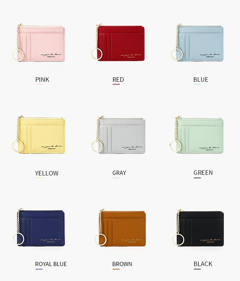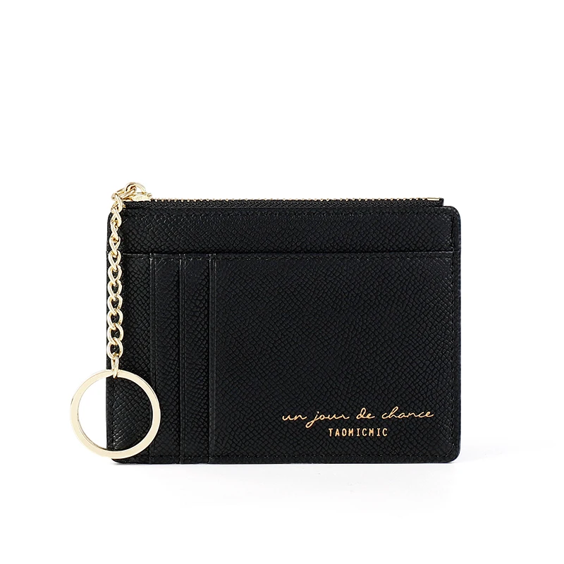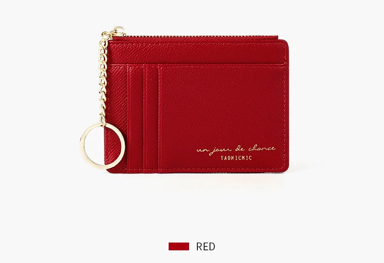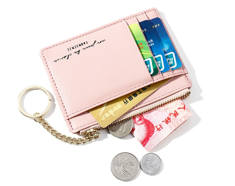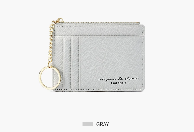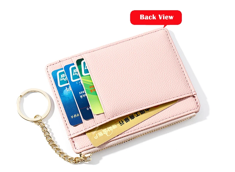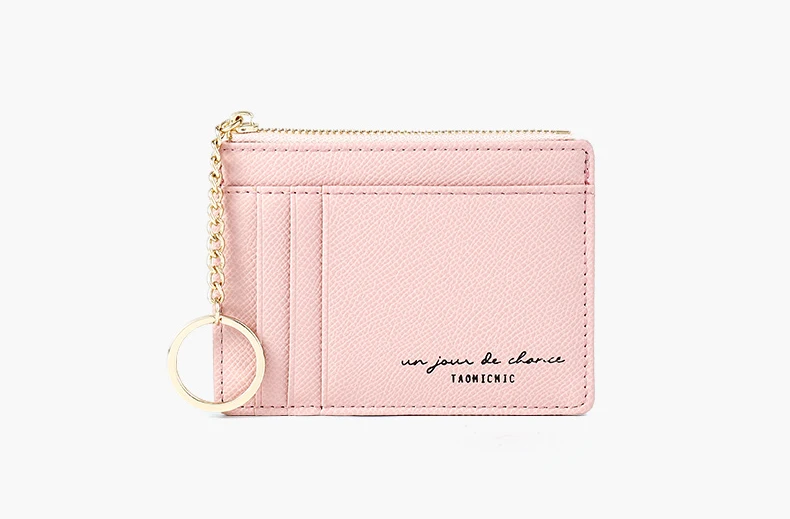 Мягкий кошелек из искусственной кожи, сумка мини для женщин, держатель для карт, милый тонкий кошелек на молнии с отделением для кредитных карт, чехол с твердой цепочкой для ключей, кошелек для монет