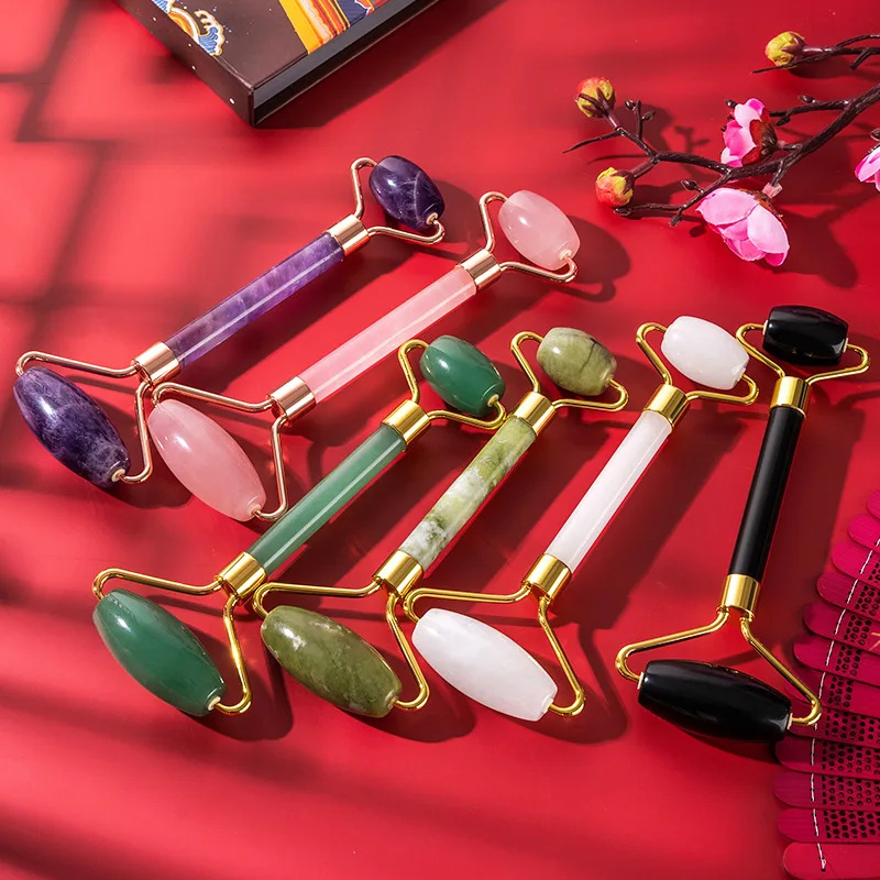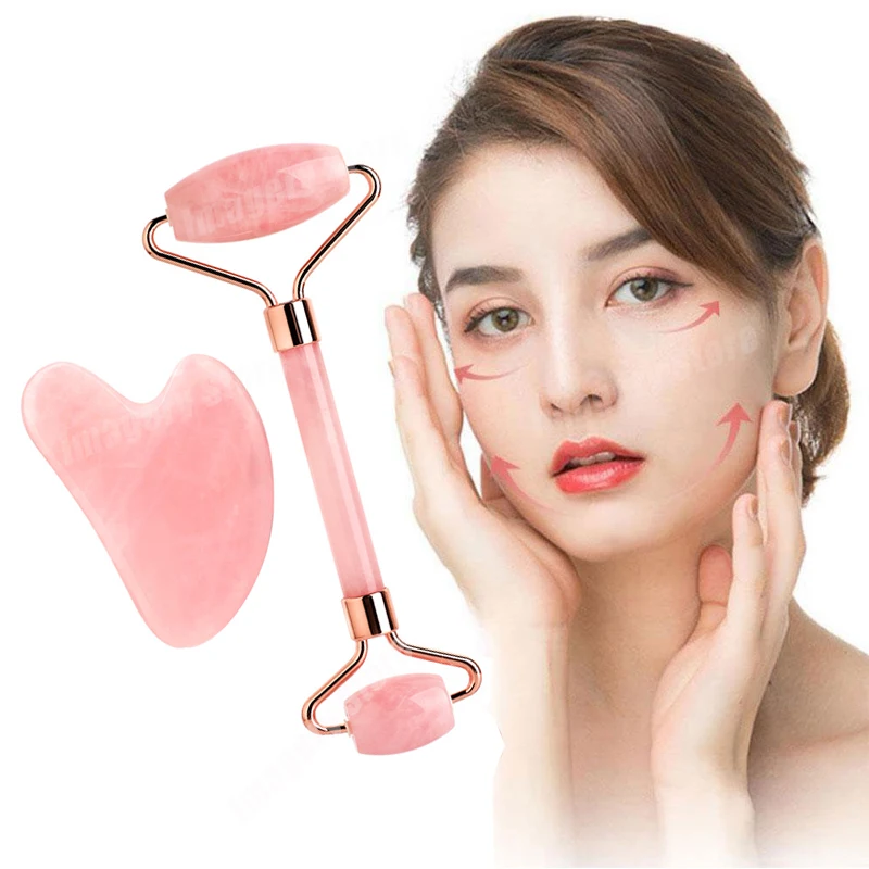 2pcs гуаша скребок, скребок гуаша для лица, розовый кварц гуаша нефритовый ролик для лица, натуральный гуашь скребок Уход за лицом роллер для лица, доска массажер для лица с напылениемиз гуа-Ша нефритовый массажер