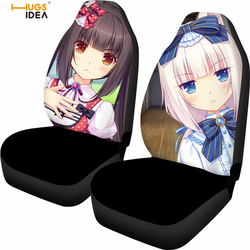 Чехлы на сиденья автомобиля Nekopara, комплект из 2 прочных моющихся чехлов черного цвета для защиты всего сиденья автомобиля