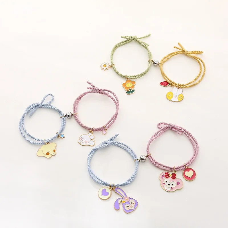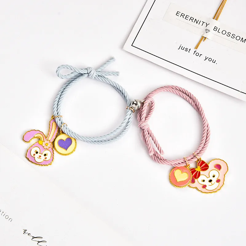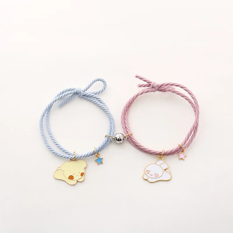 Симпатичный мультяшный браслет для пары 2 шт.компл. магнитный браслет с шариками для рук для мужчин и женщин шармы дружбы ювелирные изделия из эластичной веревки