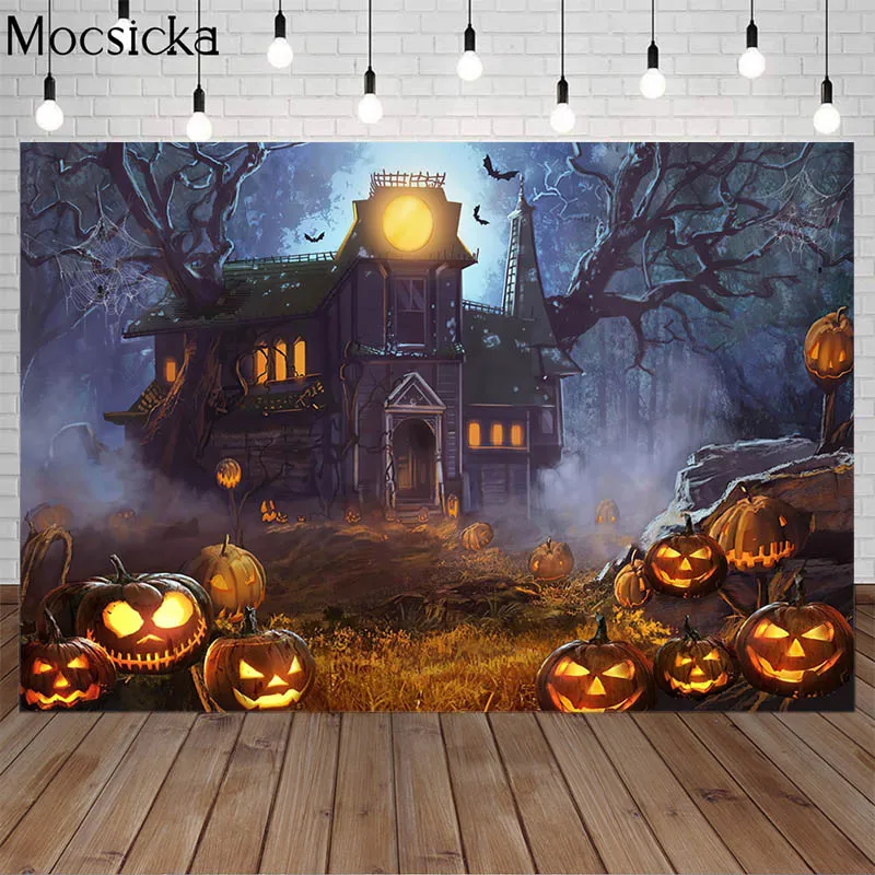Фоны Mocsicka для Хэллоуина, тыква, фонарь, ведьма, метла, луна, декоративные баннеры, реквизит для фотостудии
