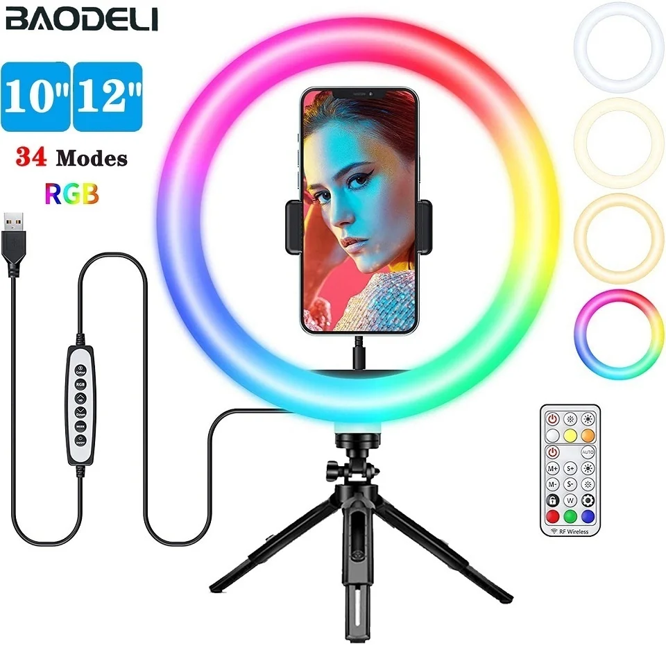 Кольцевой светодиодный светильник 12 дюймов, со штативом и держателем для телефона, кругласветильник заполнясветильник Led лампа для потоковой трансляции Youtobe