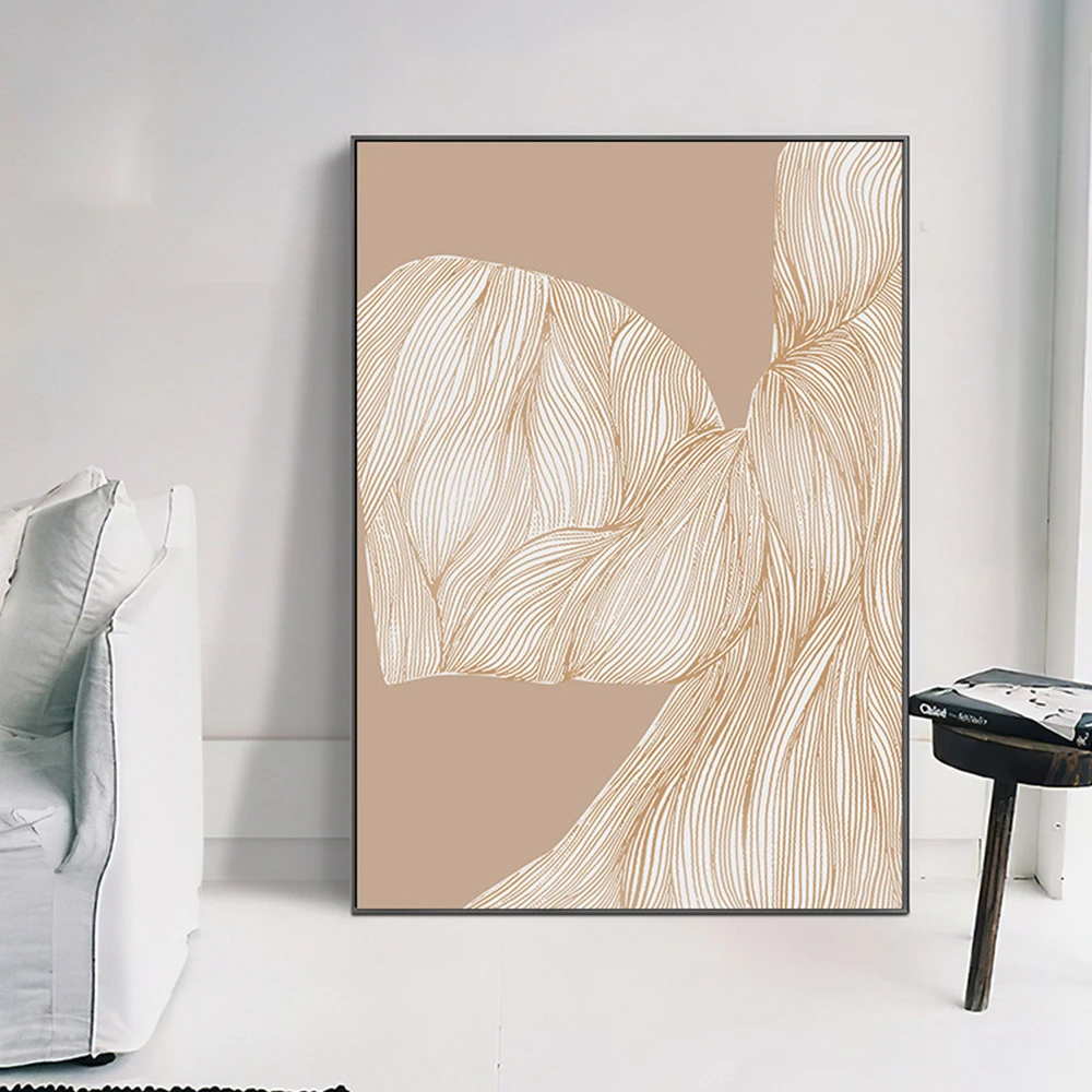 Бежевый постер в стиле бохо, абстрактные листья, холст, живопись, ж...