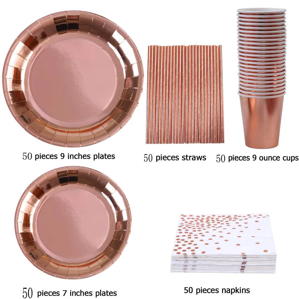 250 Pcs одноразовая посуда банкет из розового золота Алюминиевая фольга кашированая бумагой чашек соломы на день рождения вечерние поставки свадебного декора