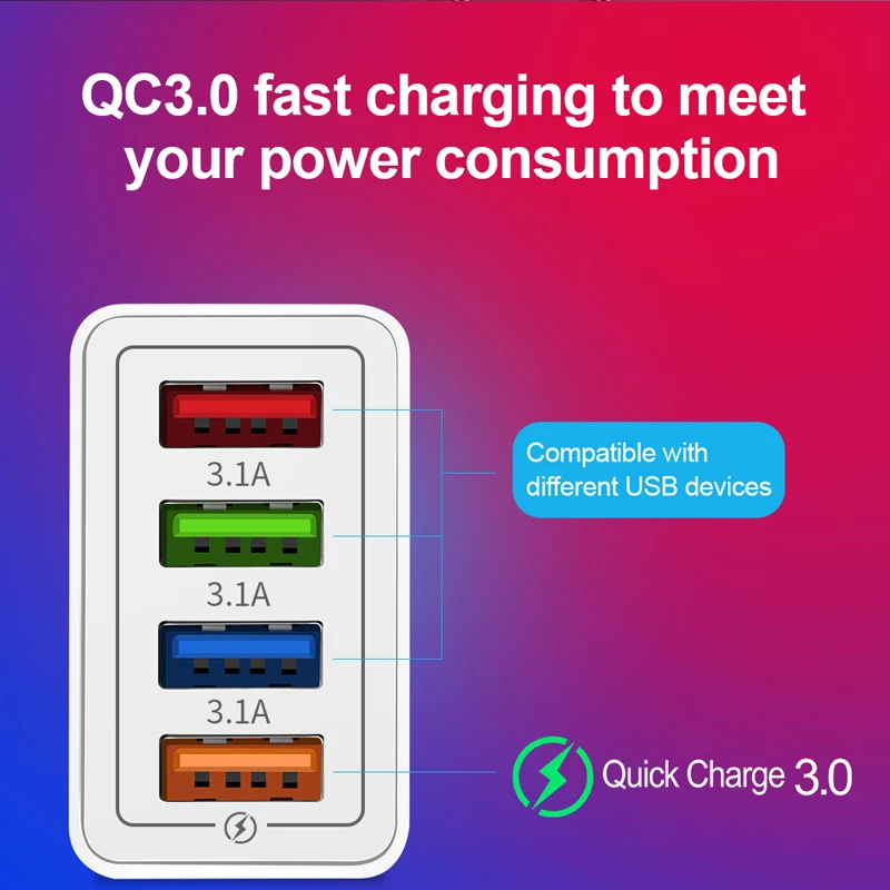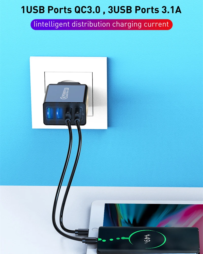 Зарядное устройство QC 3,0 с 4 USB-портами и поддержкой быстрой зар...