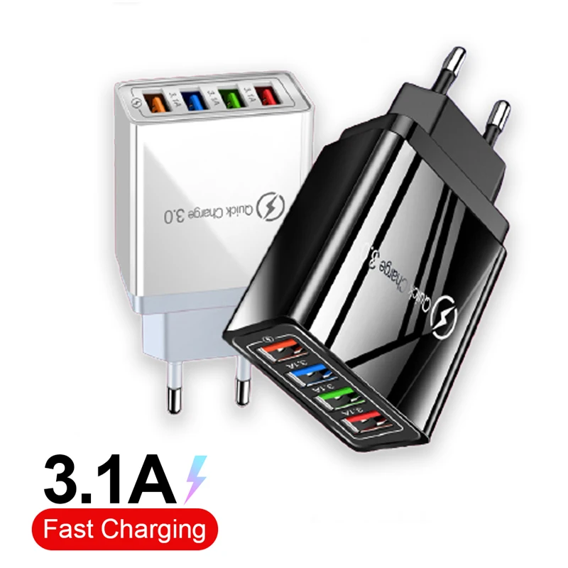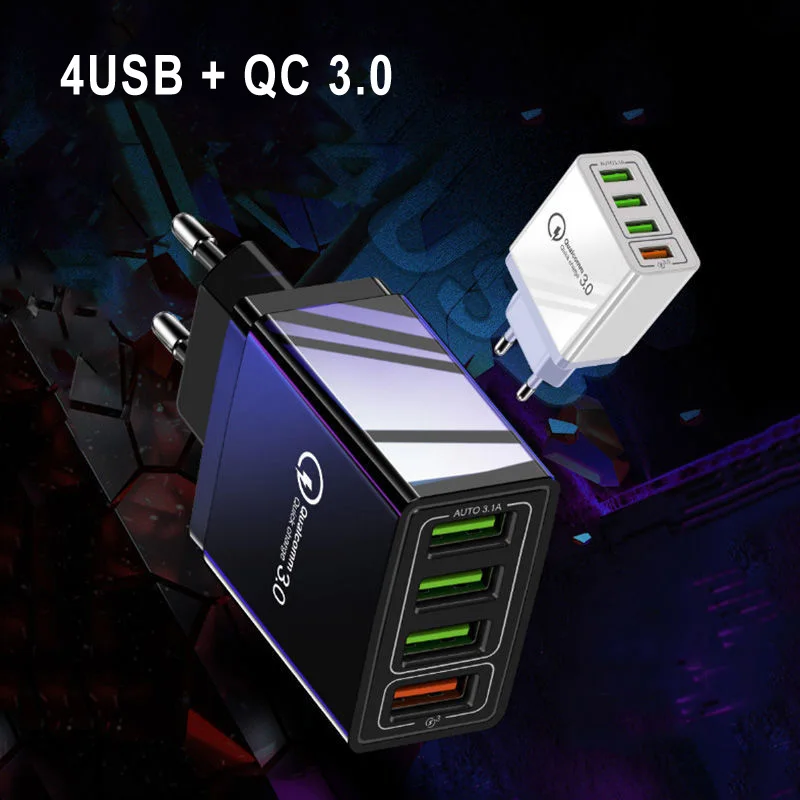 Быстрое зарядное устройство с 4 USB-портами, быстрая зарядка 3,0 дл...