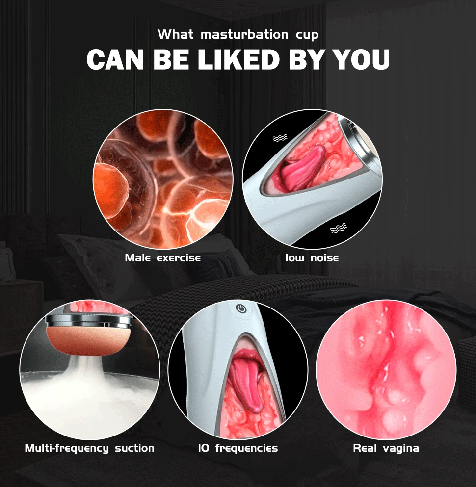√Интеллектуальные режимы-Эта Роскошная чашка для мастурбации разработана с 10 режимами вибрации и 10 режимами лижания языка, что дает вам широкий выбор, чтобы помочь вам насладиться всеми видами стимуляции. Он будет вибрировать через ваше трение, когда вы начнете использовать его, и сделает сексуальный стон. Как будто ваша девушка рядом с вами.