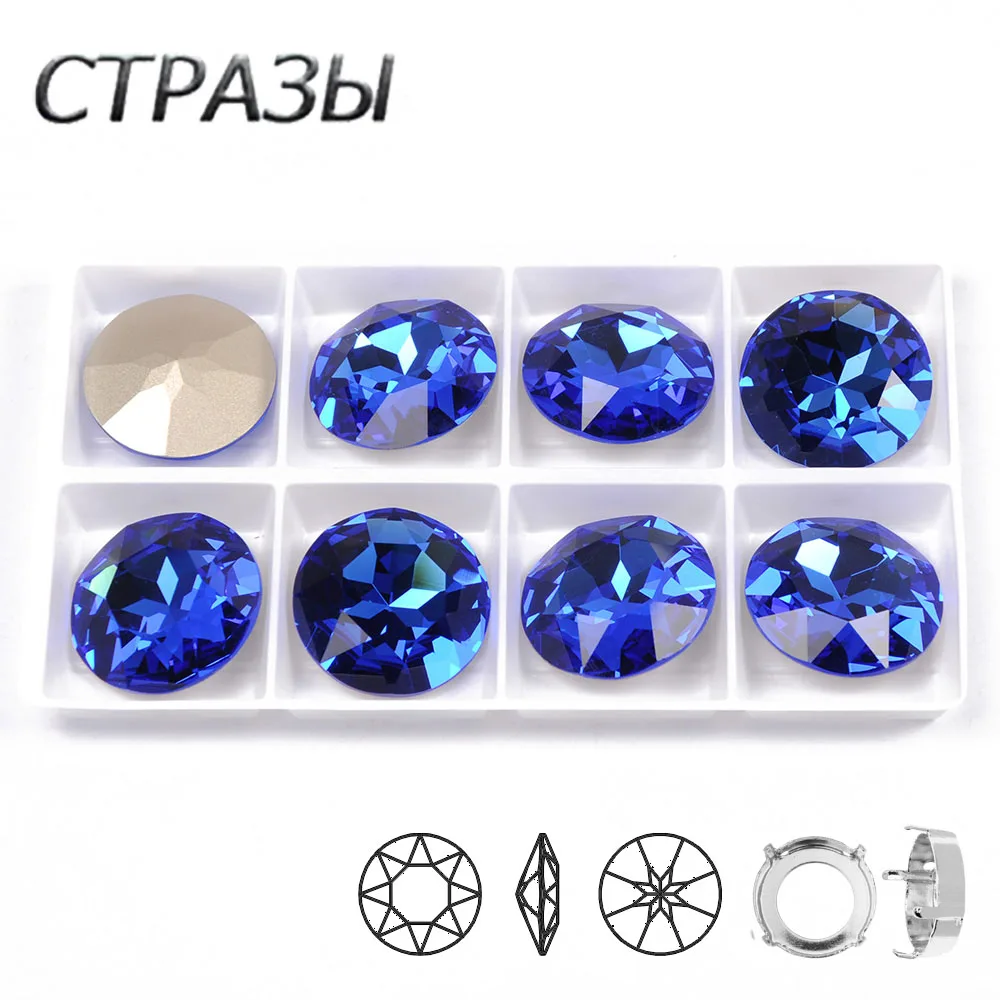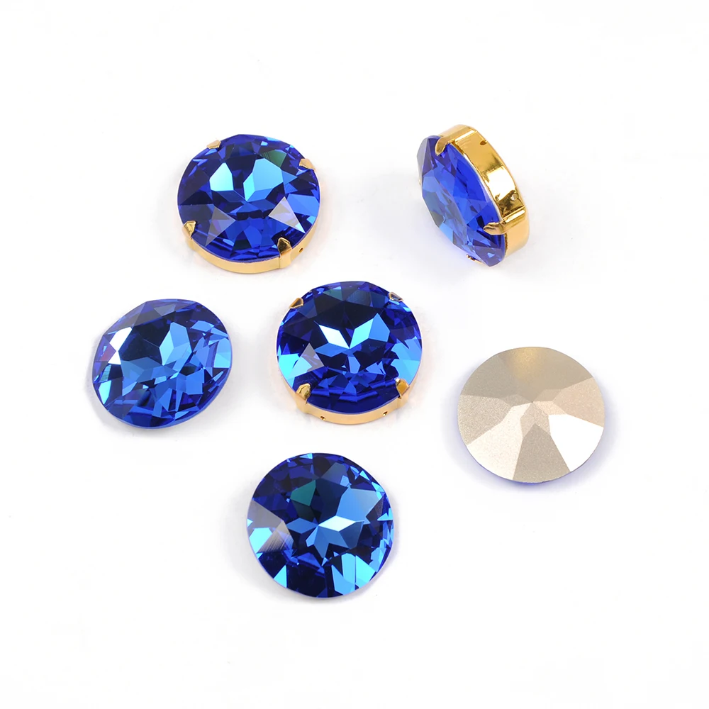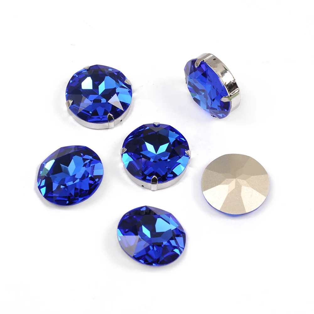 Стеклянные стразы CTPA3bI, круглые, блестящие, сапфировые, с когтями, для самостоятельного изготовления одежды и аксессуаров