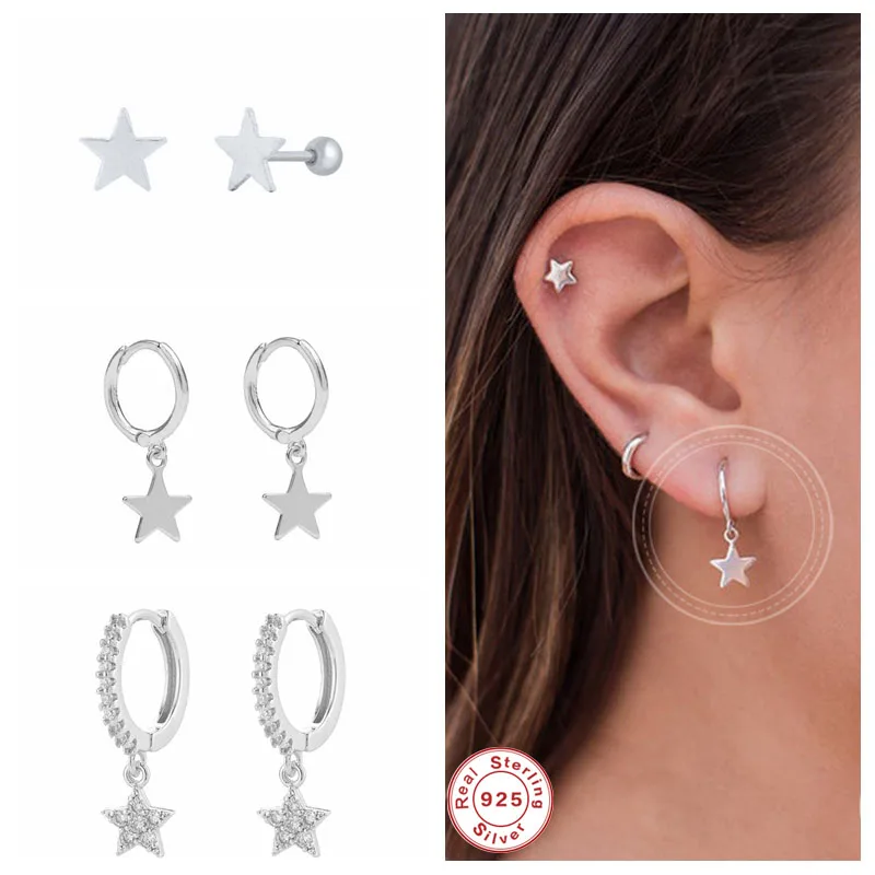 Aide 925 стерлингового серебра Классический Циркон Подвеска Звезда Луна Серьги-кольца для женщин с украшением в виде кристаллов серьги пентаграмма ювелирных изделий Pendiente