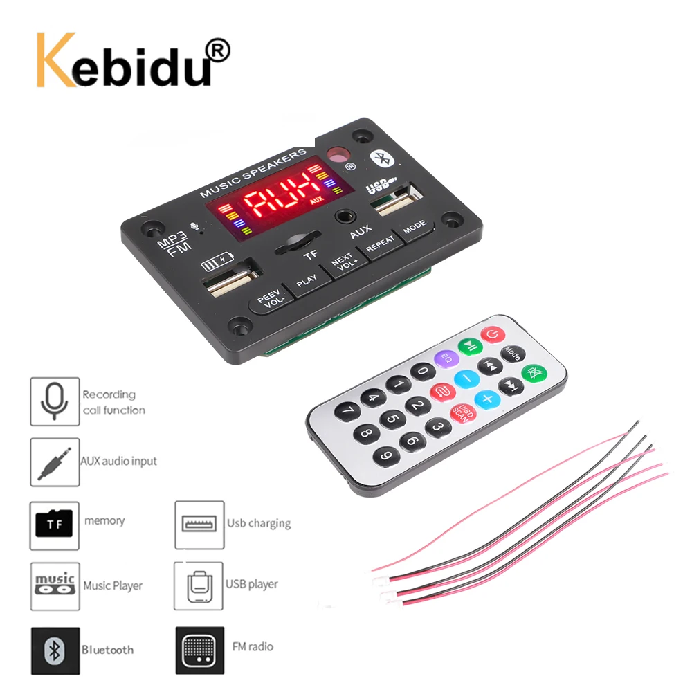 Kebidu 12V цветной экран Bluetooth 5,0 Перезаряжаемый USB декодер доска MP3 плеер поддерживает вызова записывающая лента усилитель 2*3 Вт
