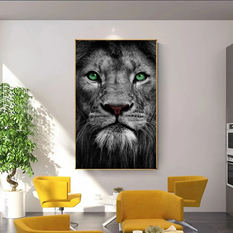 Современный черный, белый цвет Львы зеленый плакаты с глазами, печать на холсте животное масло для лица, Декоративная Настенная картина без рамки для Декор в гостиную