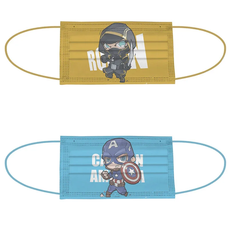Нетканые одноразовые маски изготовлены из 3 слоев материалов (первый слой-Нетканая ткань, второй слой-выдувная ткань из расплава, а третий слой-Нетканая ткань). Он безопасен и безопасен в использовании, дышащий и милый, и его рисунок делает его практичным и стильным. В 3-слойная Нетканая ткань дизайн может предотвратить попадание пыли, эластичный ухо плечевой ремень позволяет легко снимать и надевать цепочку и не давят на уши.