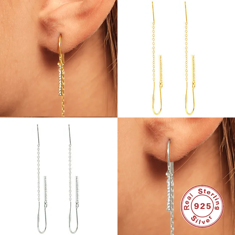 S925 серебро Европейский серьги-гвоздики в виде цепочки для женщин ...