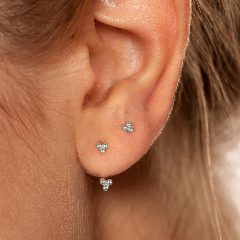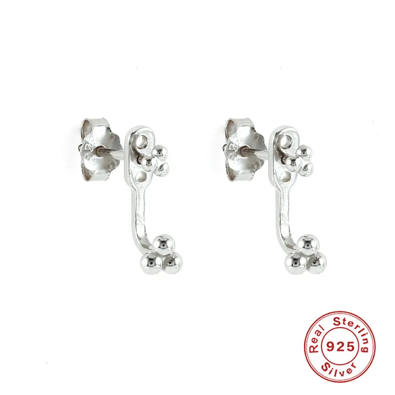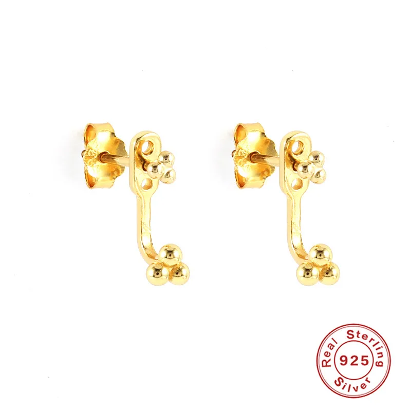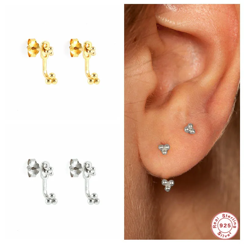 925 стерлингового серебра три бусы с отверстием, серьги со шпилькой, для женщин, крошечные спереди и длинное сзади серьги-клипсы куртка зажимы украшения Pendiente