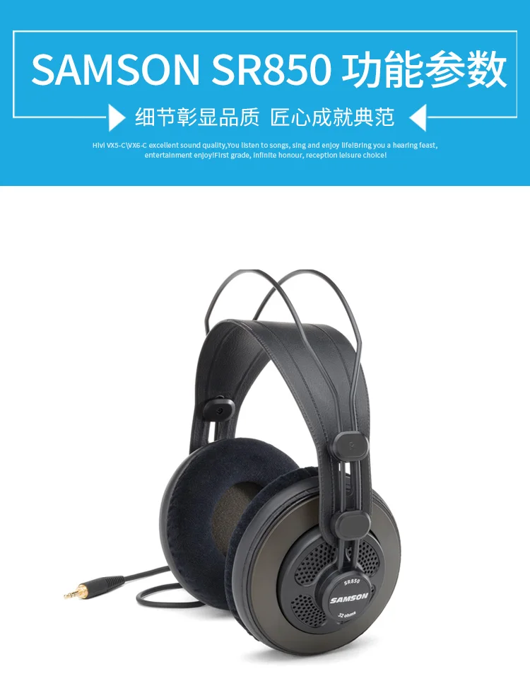 Оригинальная профессиональная гарнитура Samson SR850 для монитора, динамические полуоткрытые студийные ориентировочные наушники для музыкантадиджея, велюровые наушники