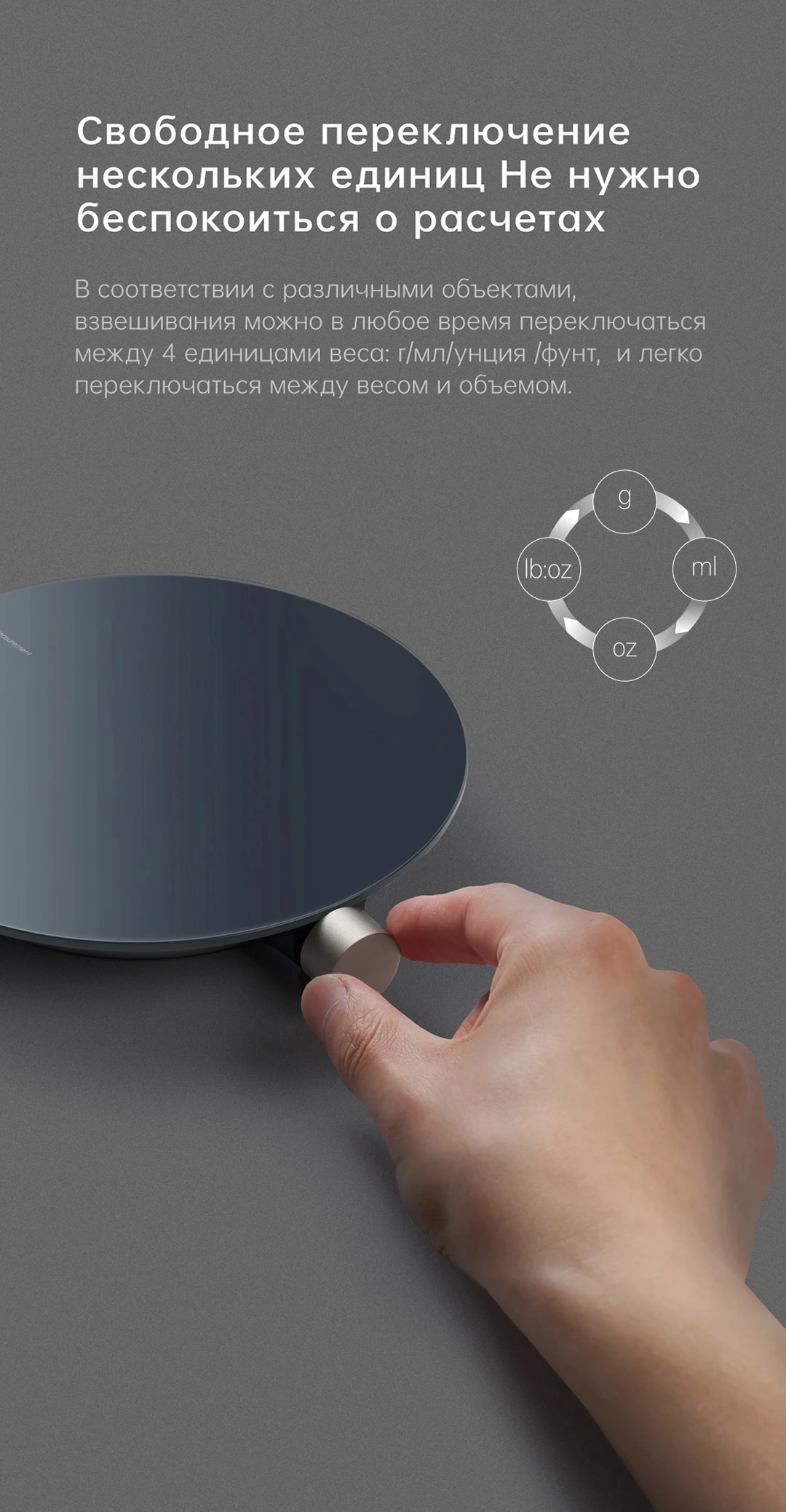 Чтобы удовлетворить ваши потребности в свободном переключении между 4 весовыми единицами g/ml/oz/lb:oz и гибком выборе между весовыми и объемными единицами.