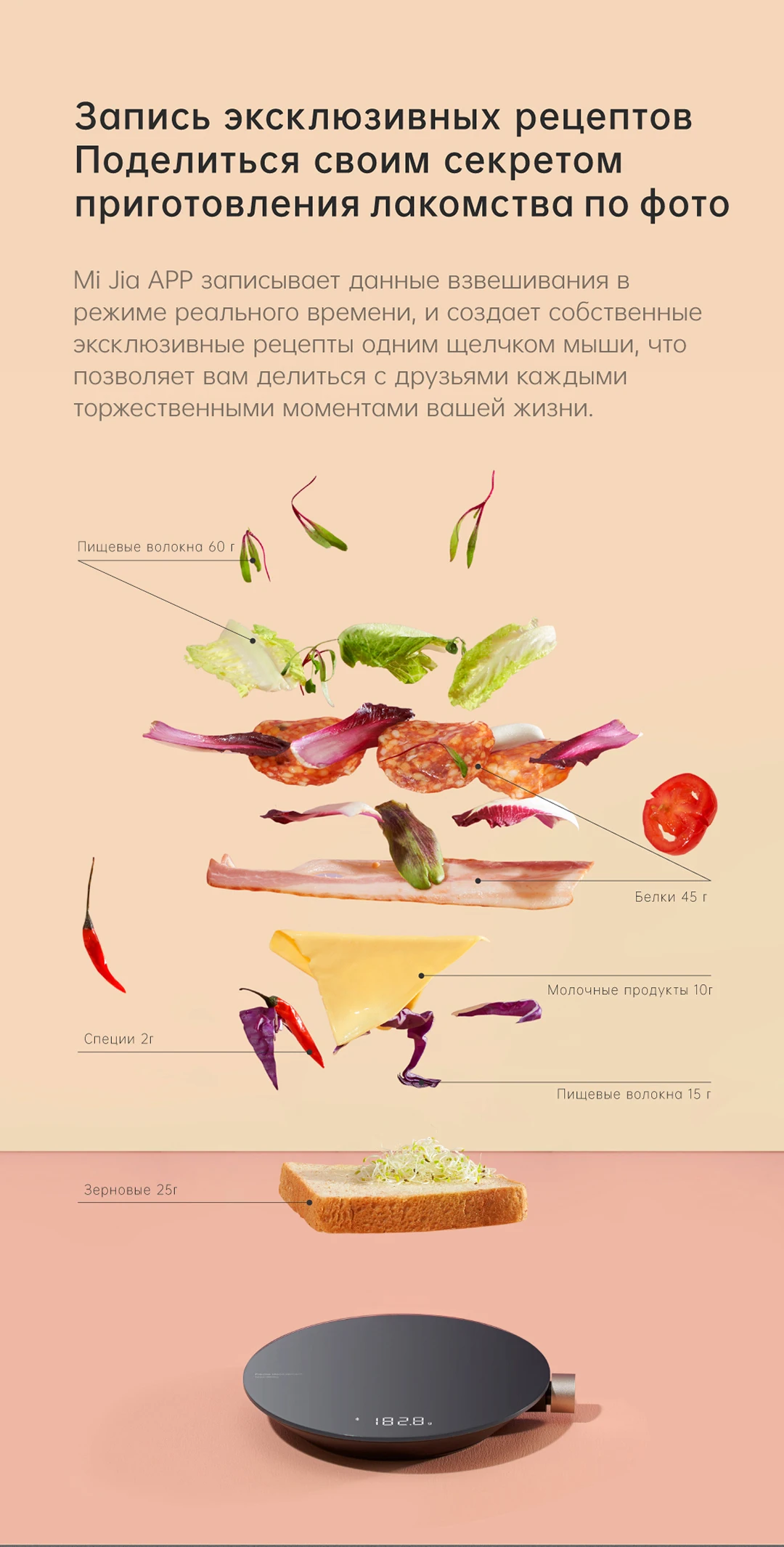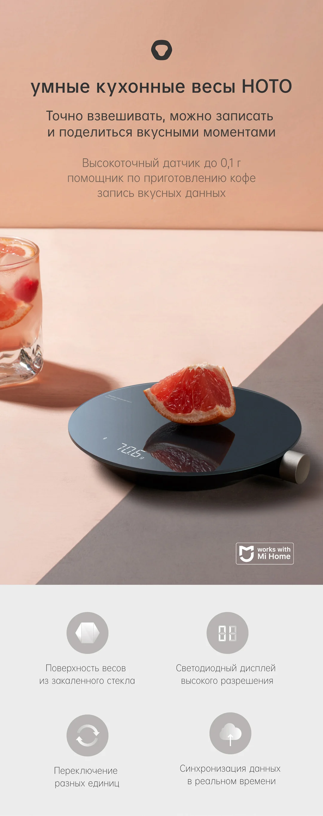 Кухонные весы HOTO SmartТочное взвешивание, запись и делитесь всеми деликатами0,1g высокоточной Сенсор/ручной капельного помощник/Запись вкусных ингредиентовДиапазон взвешивания 1-3000 гHOTO Smart Kitchen Scale разработала новый интерактивный дизайн, который сочетает различные функции в одной кнопке.