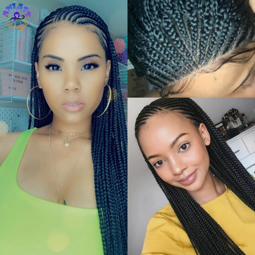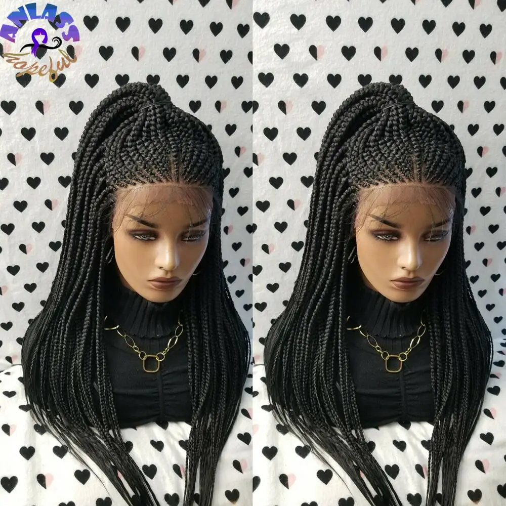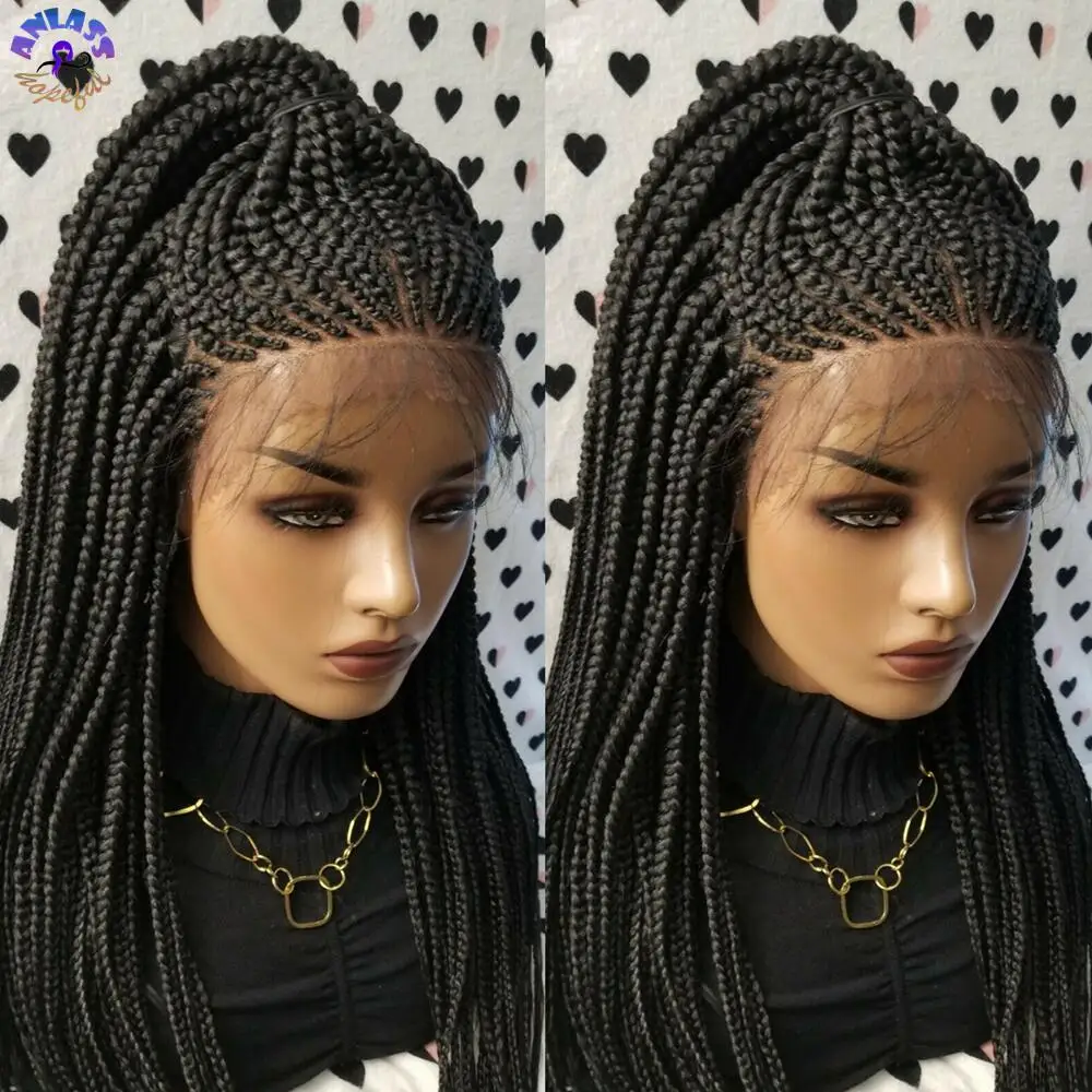 Парик для косичек черного цвета, плетеные африканские косички, передний парик для черных женщин из синтетического термостойкого волокна
