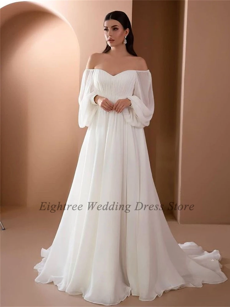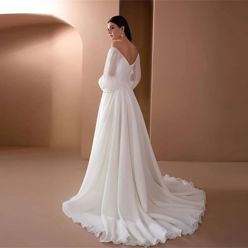 Элегантное Длинное Свадебное платье А-силуэта с пышными рукавами платье до пола со шлейфом