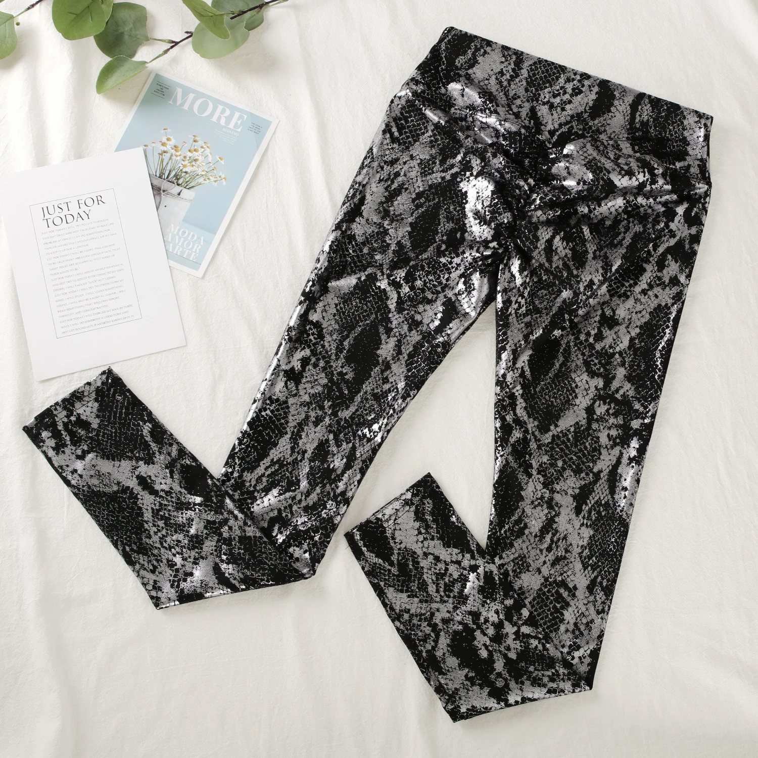 Женские леггинсы с эффектом пуш-ап WHOUARE, леггинсы с высокой талией и змеиным принтом для фитнеса, леггинсы для занятий спортом и тренировок, блестящие леггинсы для женщин