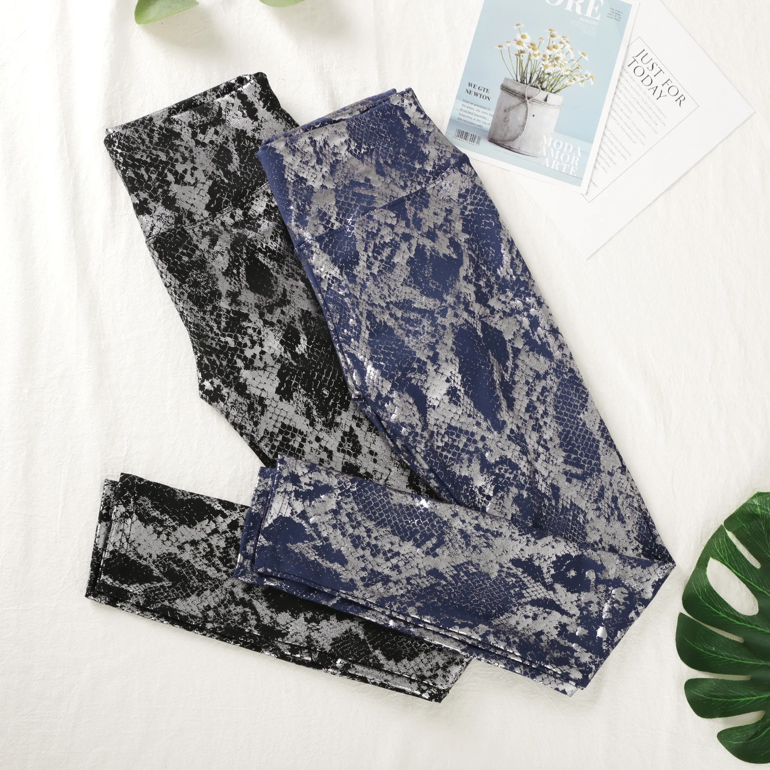 Новинка 2021, женские леггинсы для фитнеса с узором под змеиную кож...