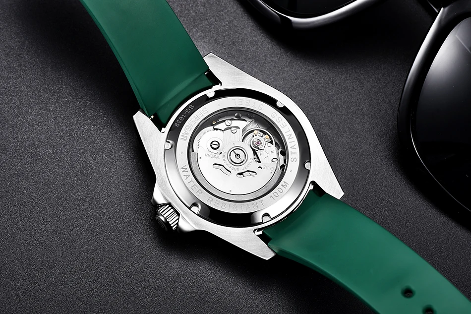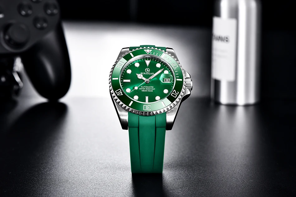 Элегантная коллекция Besigar нержавеющая сталь мужские наручные часы поставляется с прозрачный чехол с задним и передним 360 ° вращающийся ободок. Циферблаты и уникальная ткань делают его роскошным и классическим. Высококачественные ремешки из нержавеющей стали не только устойчивы, но и идеально сидят на запястье владельца. Эти современные аналоговые часы имеют зеленый циферблат с рисунком. Серебряный цвет используется для выделения его показателей и часового индекса. Благодаря эффективному движению движения Seiko NH35. Bersigar Для мужчин кварцевые часы с прозрачный чехол с задним и передним 360 ° вращающийся ободок.