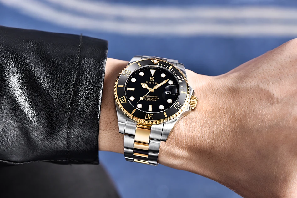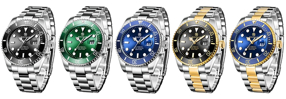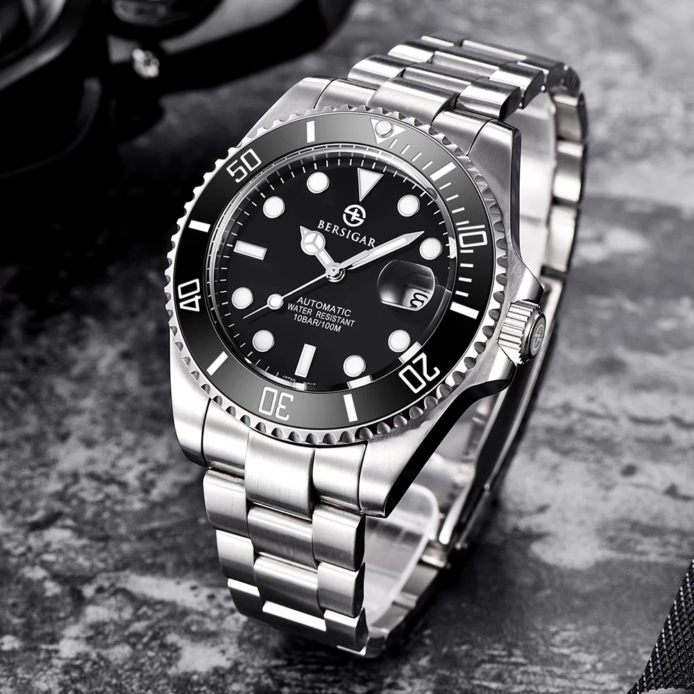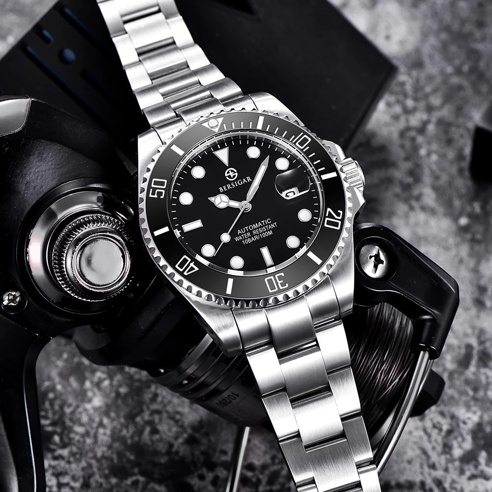 Мужские автоматические часы BERSIGAR из нержавеющей стали, Водонепр...