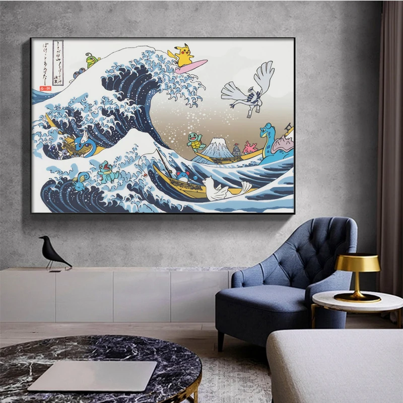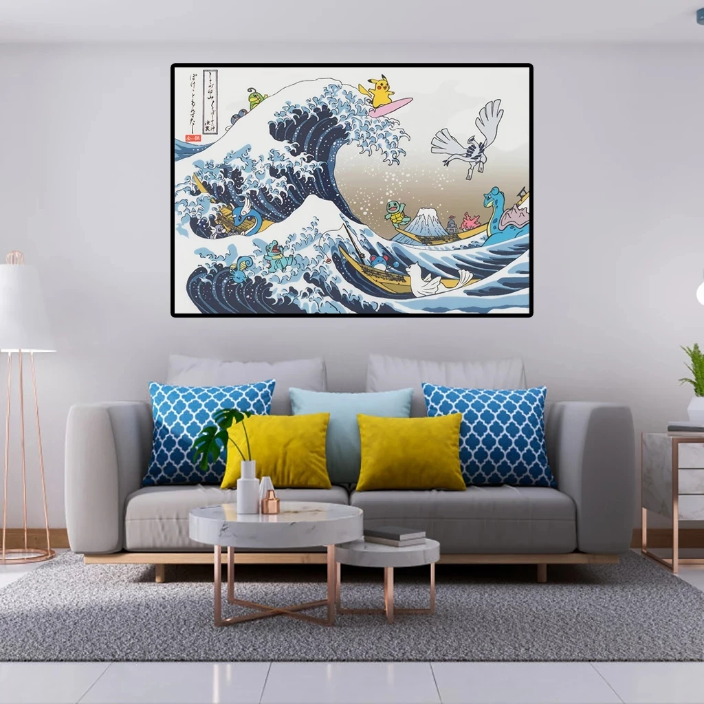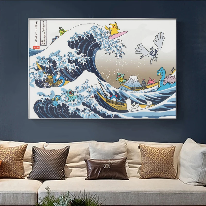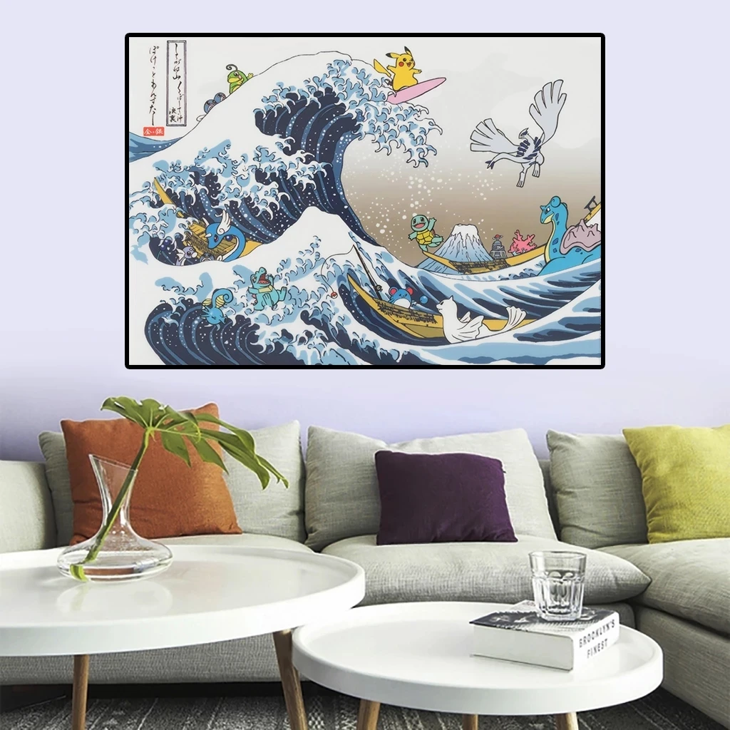 Покемон современный Японский комикс аниме великая волна холст карти...