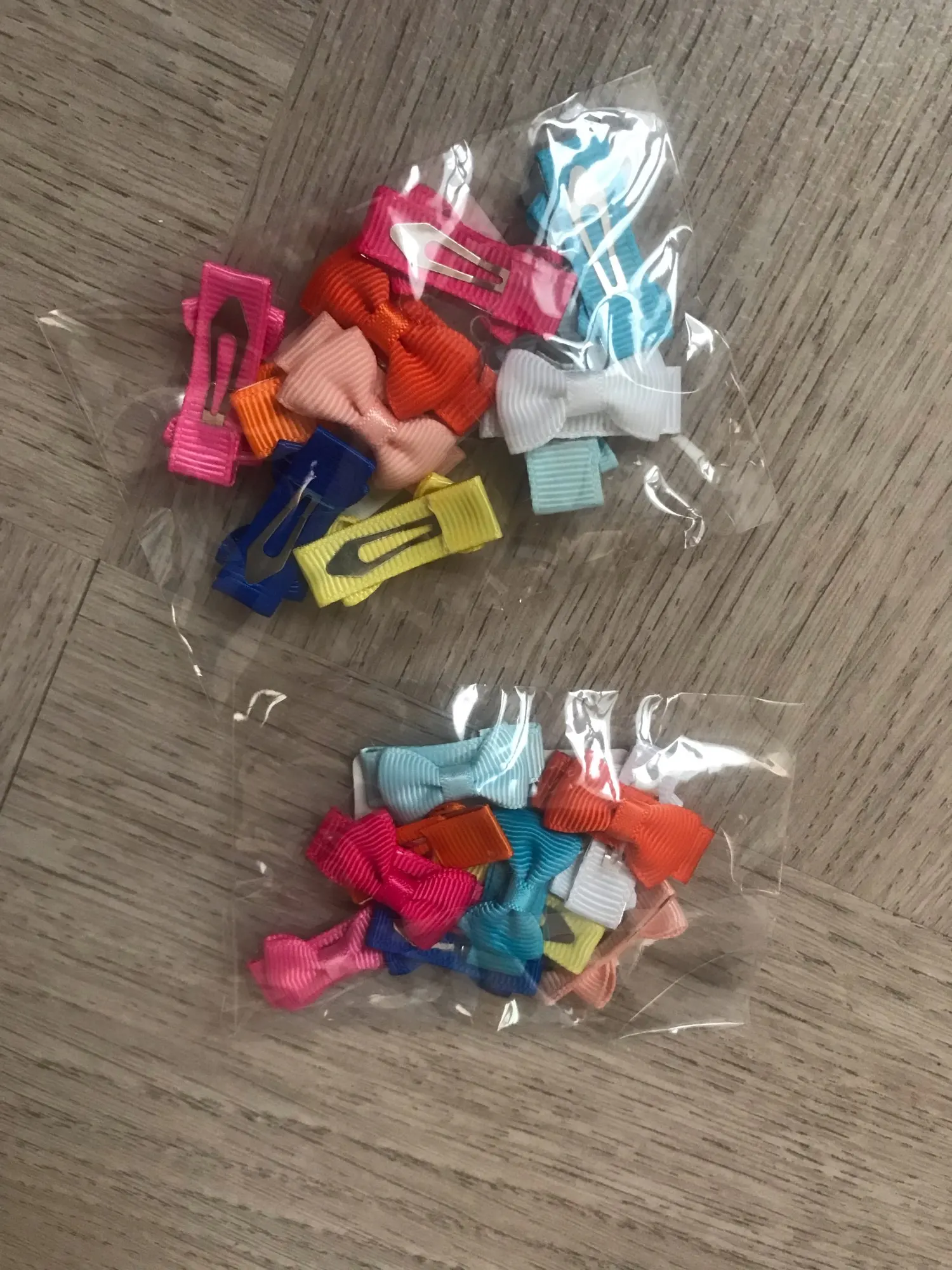 Son pequeños buen tamaño para bebe, lo único que son de prensar y en lo personal eso ami no me gusta mucho porque lastiman a los bebé. Al prensarlo. Vino en 15 días