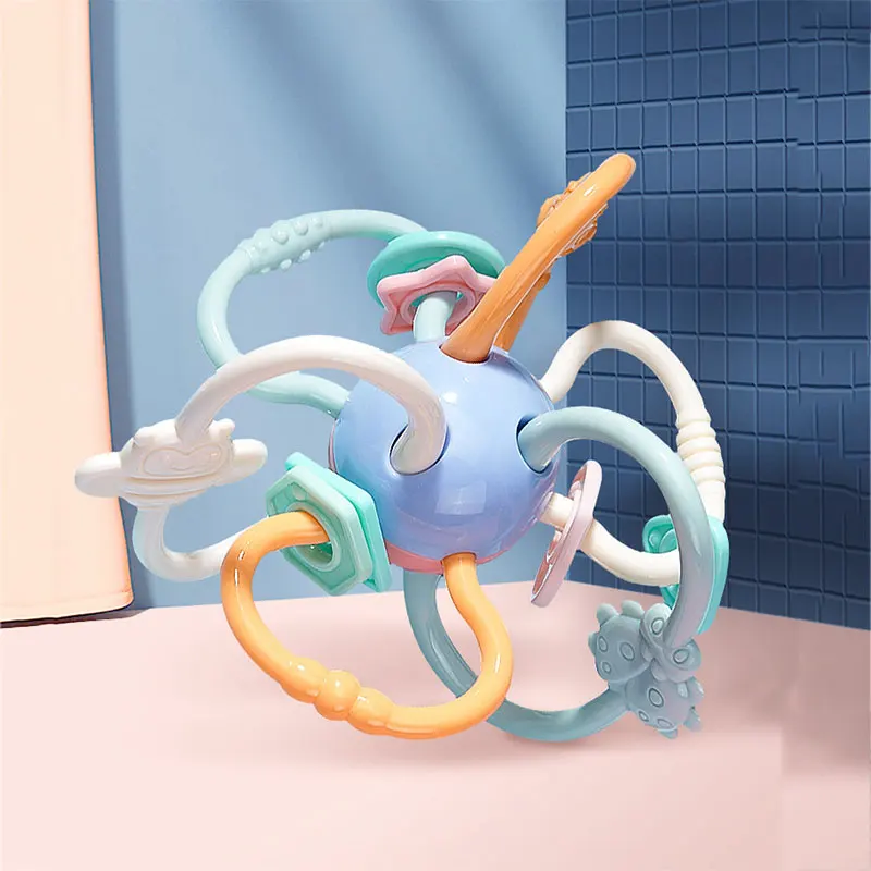 Спецификация:Тип товара: детская погремушкаВозраст: 3 + месяцаМатериал: ТПУ + ABSЦвет: как показано на картинке/случайный цветДезинфекция: 120 градусов Цельсия высокая температура воды пара дезинфекцияПосылка включает в себя: 1 детская игрушка