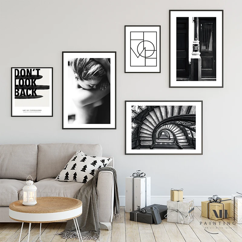 Черный белый модный постер уличный пейзаж настенная Художественная ...