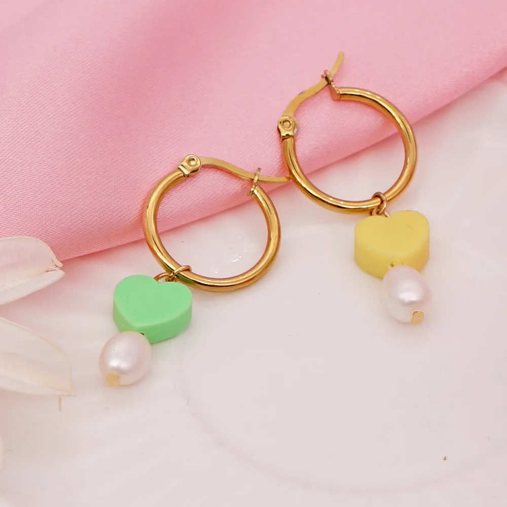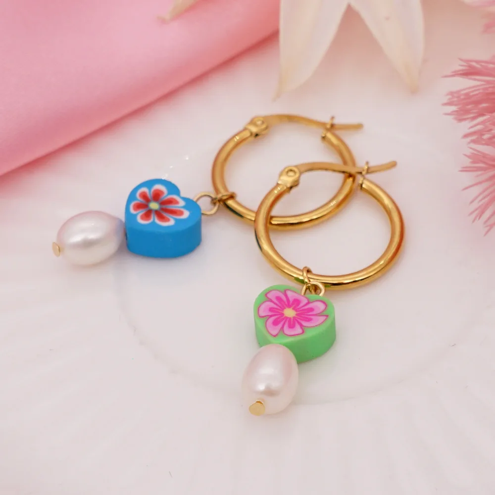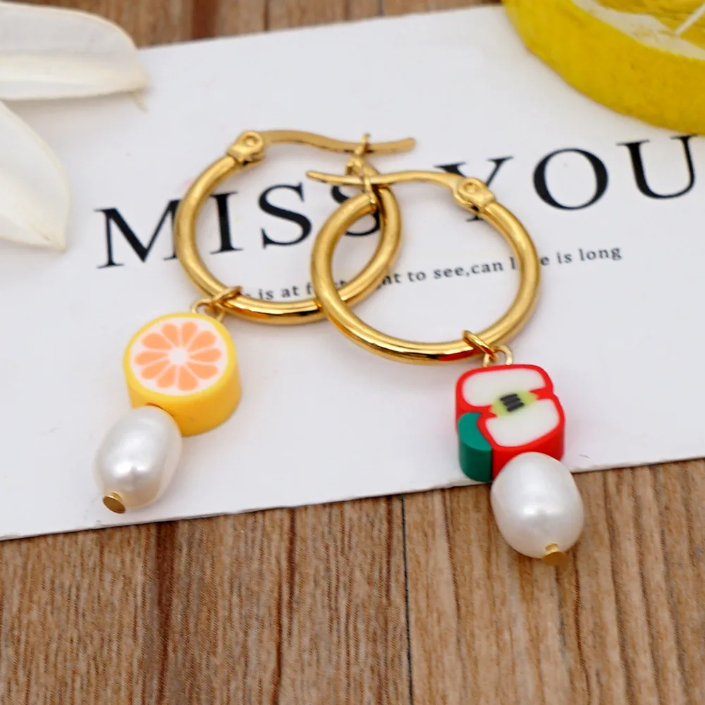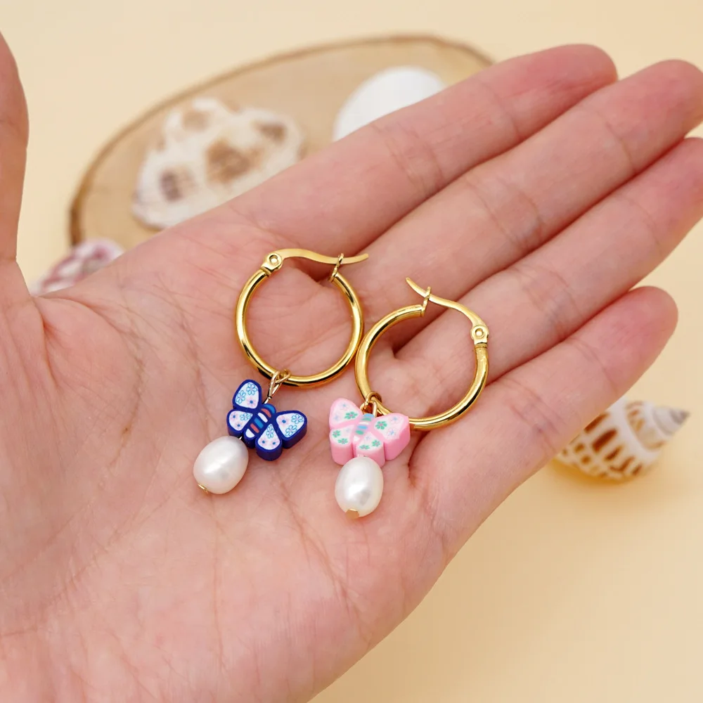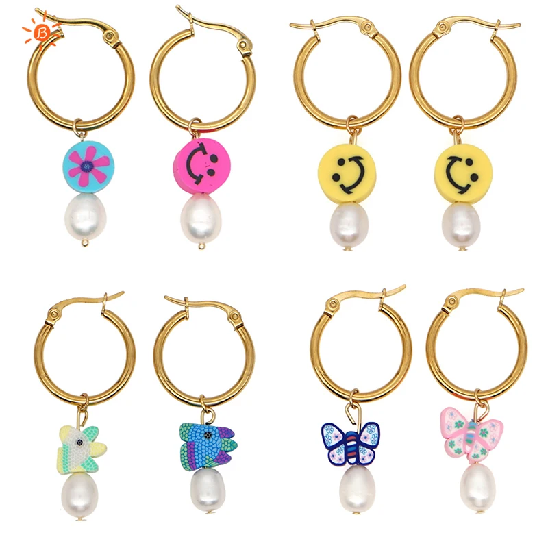 Модные милые цветные серьги-кольца BLIN с улыбкой, цветком, натуральным жемчугом и бусинами, висячие серьги-кольца, летние серьги из нержавеющей стали